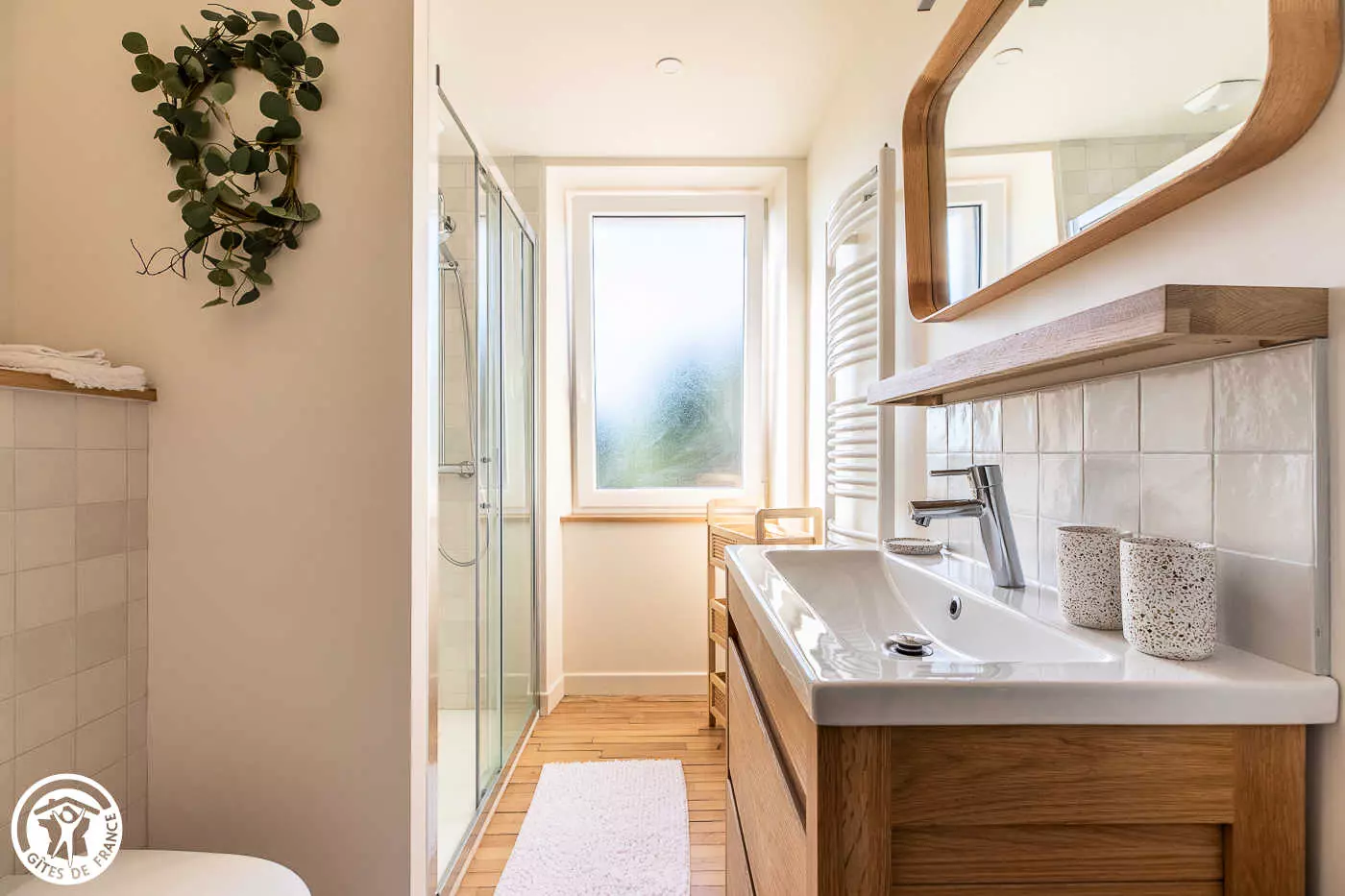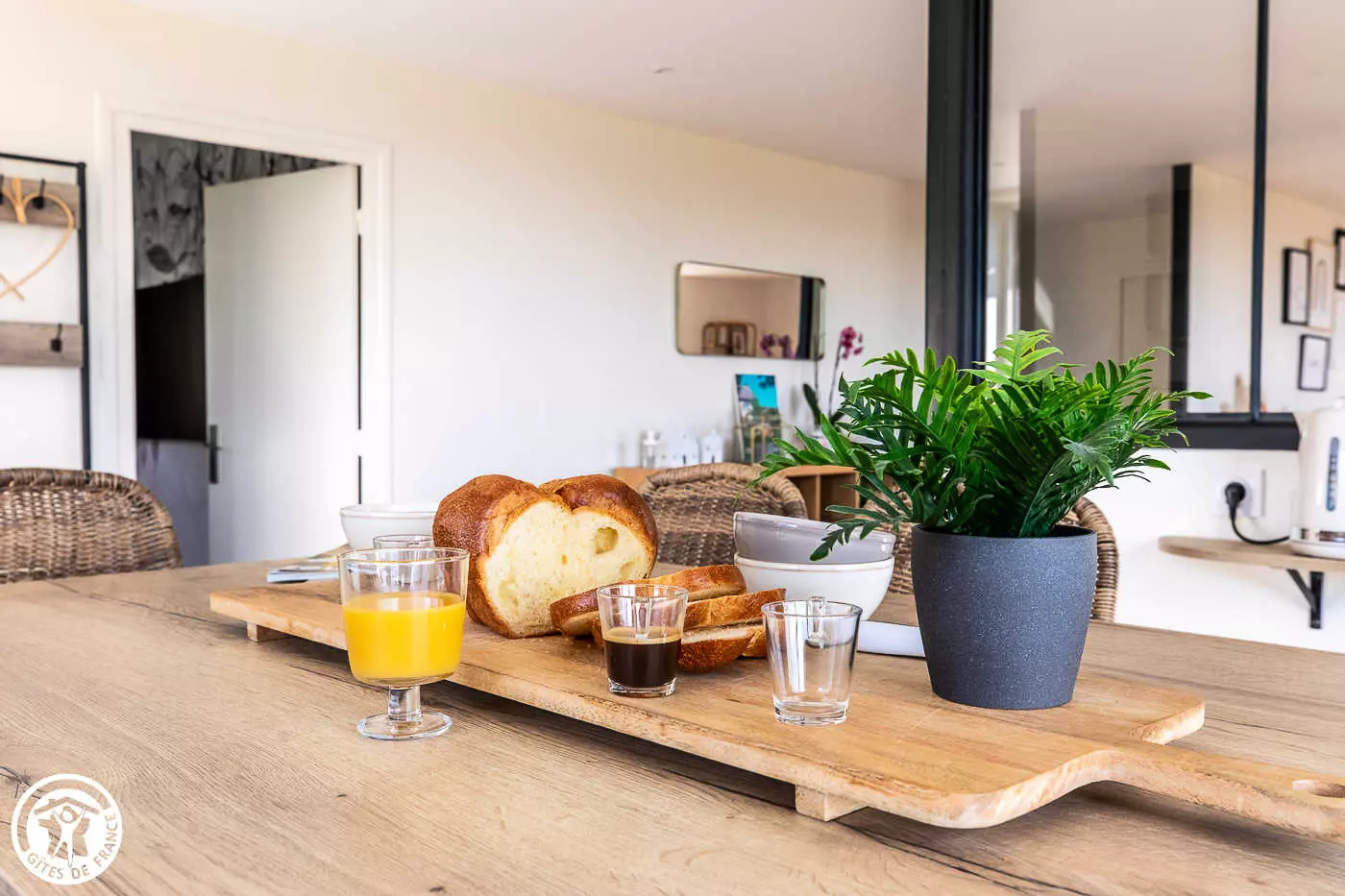 En entrant, vous trouverez : - une cuisine toute équipée (dont cafetière "expresso broyeur Delonghi" et cafetière à filtres)