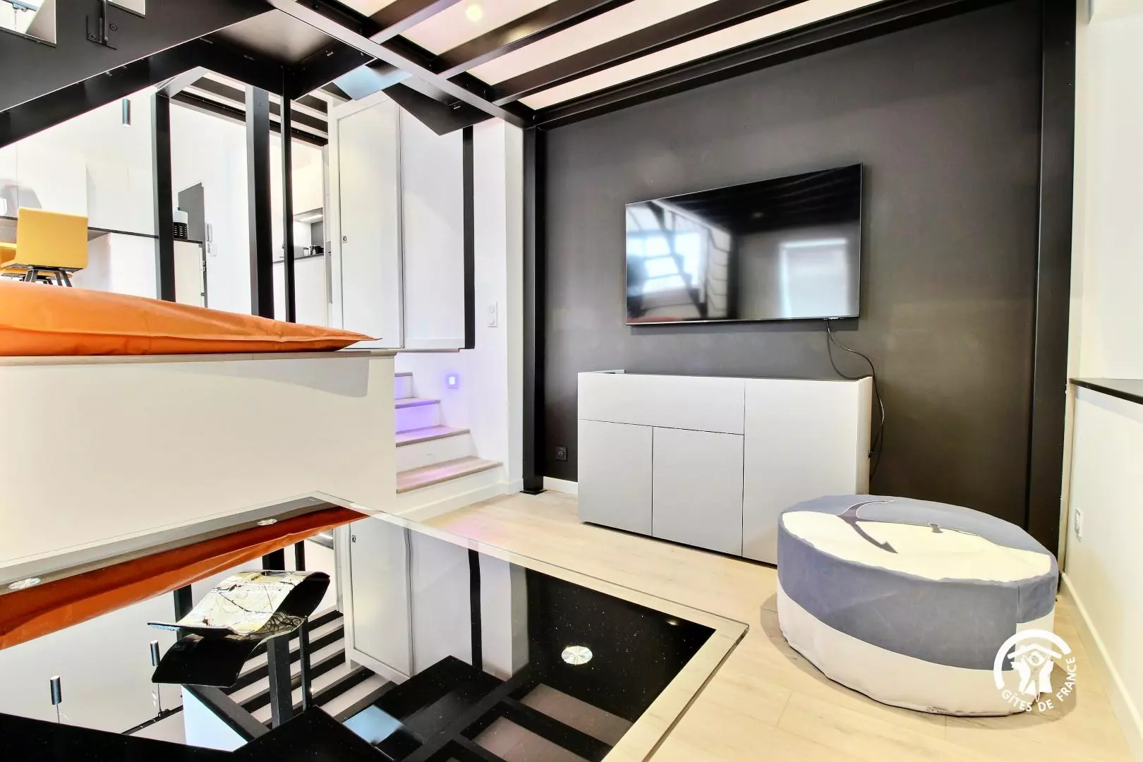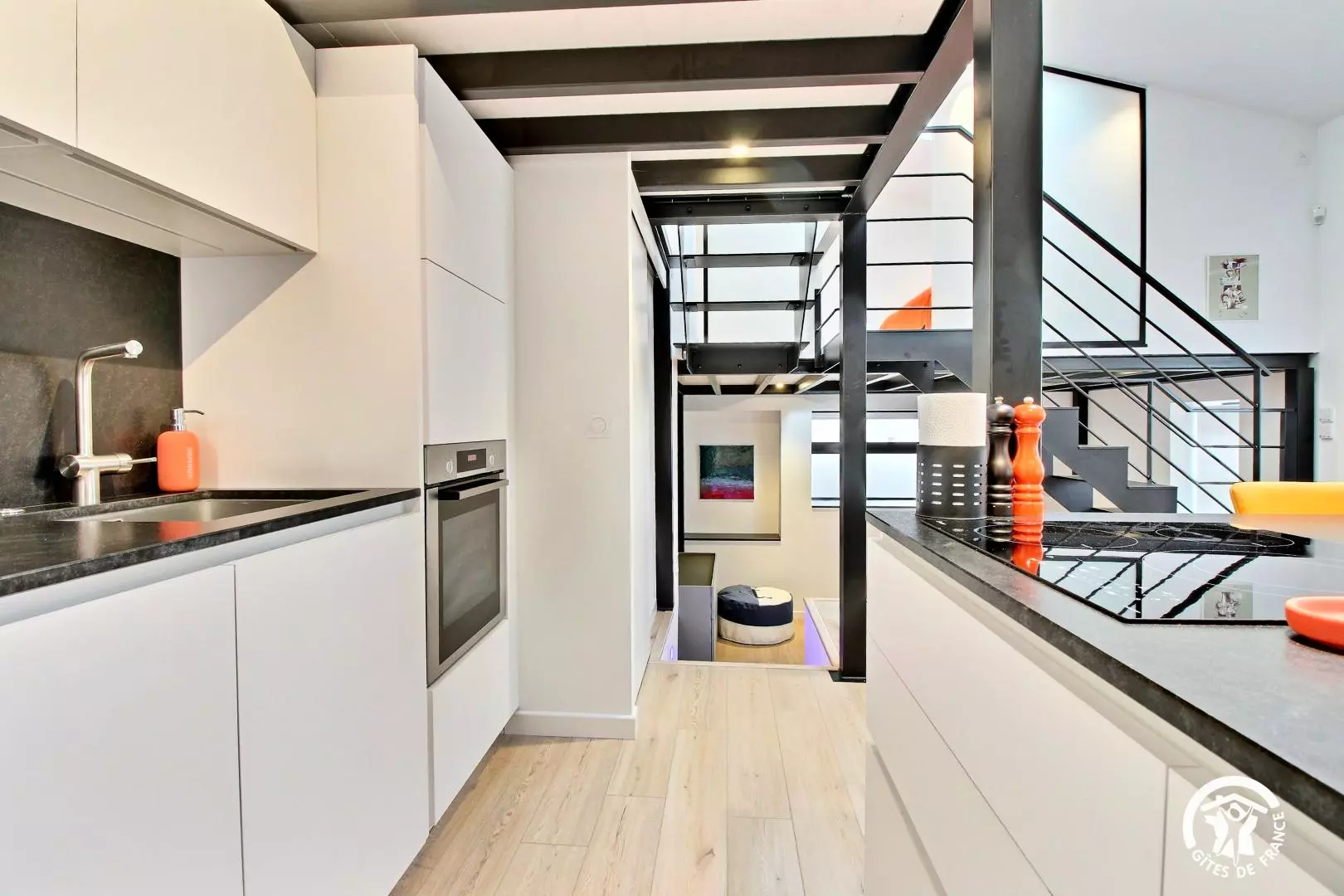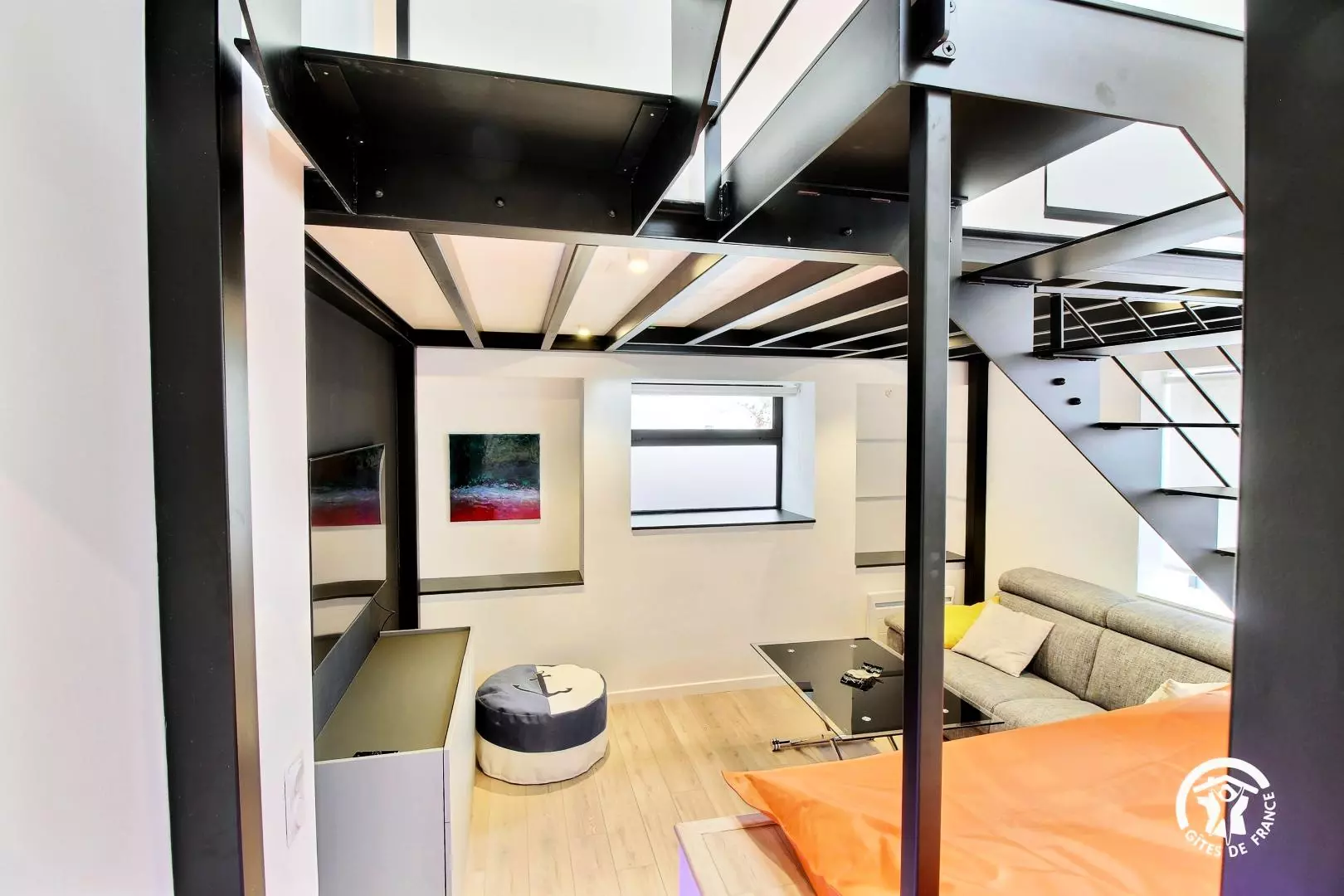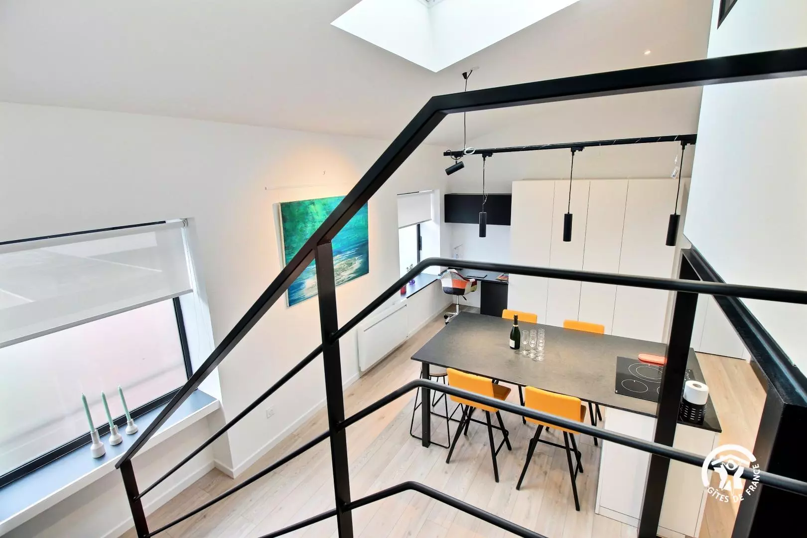 Bienvenue dans cet appartement contemporain entièrement rénové, aménagé dans un ancien bureau. Ce loft offre un agencement astucieux et la décoration marie parfaitement la modernité avec le grand escalier style industriel. Les hauts plafonds et les fenêtres laissent entrer un puits de lumière naturelle, créant une atmosphère lumineuse et aérée.