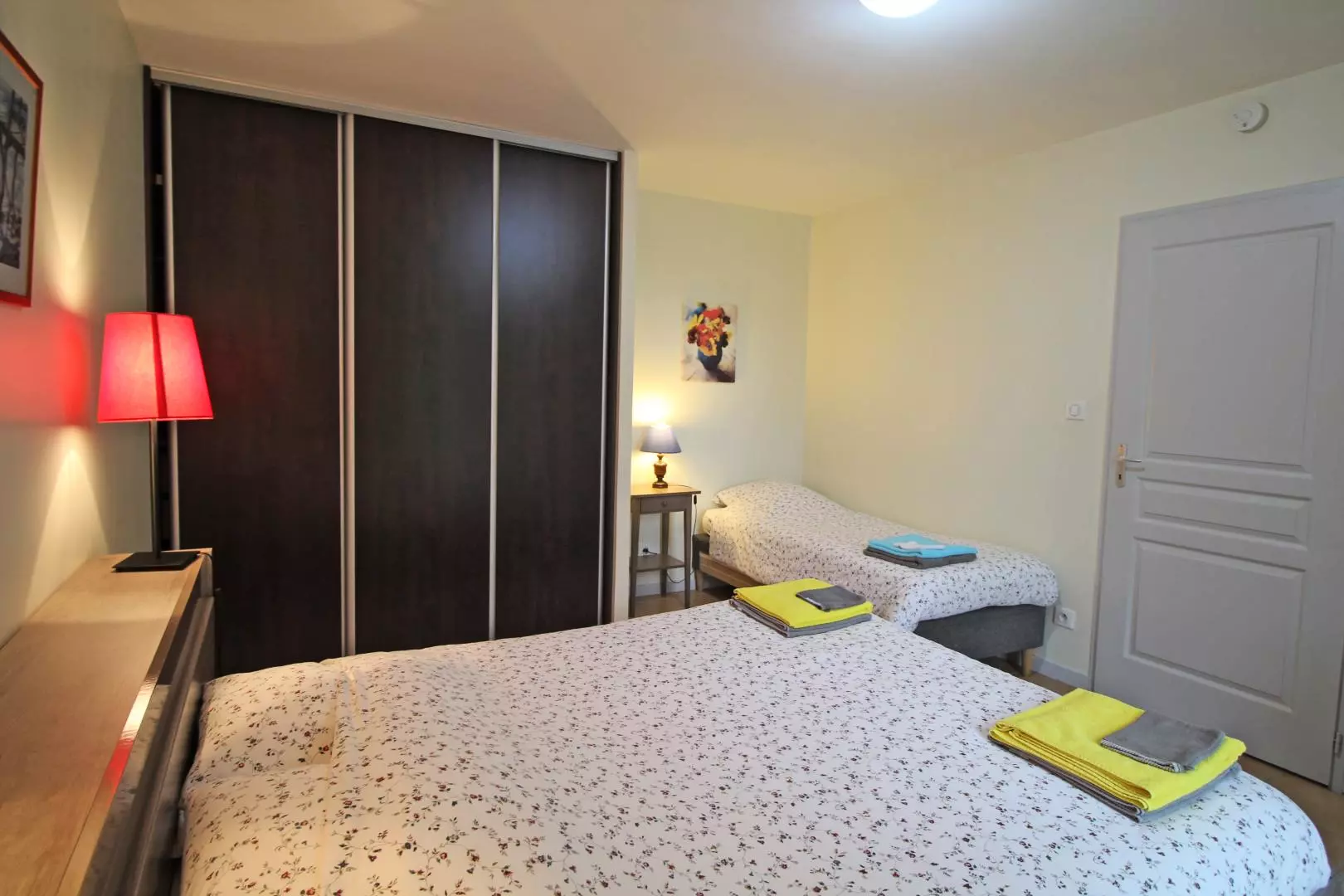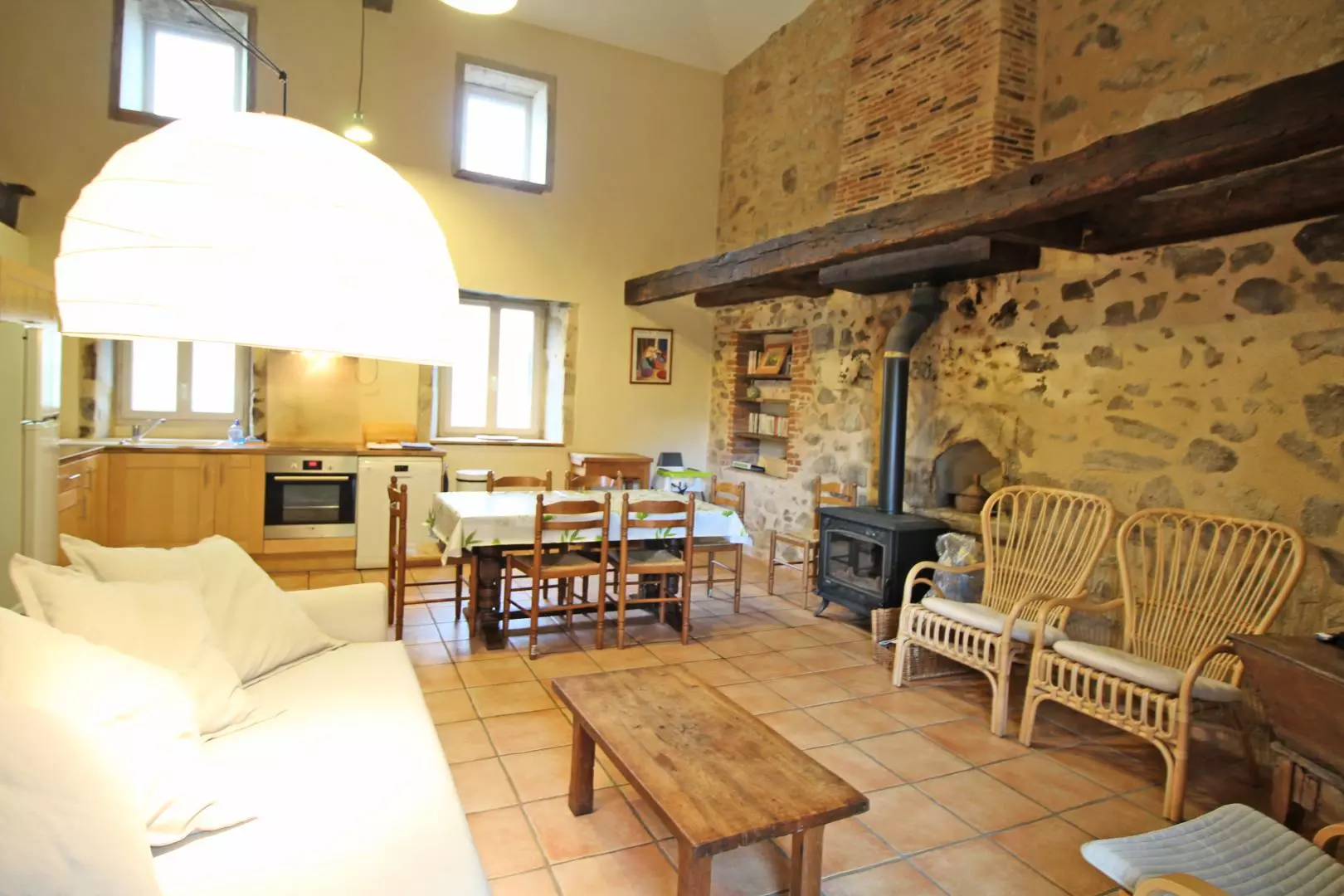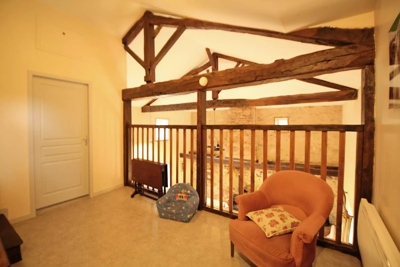 Surf 115 m². Rez-de-chaussée : séjour avec coin cuisine, coin salon avec poêle à bois (canapé lit 2 places), 1 chambre (1 lit 2 places, 1 lit 1 place), salle d'eau avec wc. Etage : mezzanine desservant 2 chambres (4 lits 1 place, 1 lit bébé sur demande), salle d'eau avec wc. Chauffage électrique et poêle à bois. A l'entrée du parc d'un château du XVe, ancienne ferme limousine entièrement rénovée en un gîte confortable. Le «Petit Feuillade » ouvre sur une terrasse et un terrain privé en pelouse de 2000m². Le gîte est à proximité directe d'un grand gîte « le château de Feuillade » (20 personnes - n°87G8257) bénéficiant de son propre terrain de 3000m2.