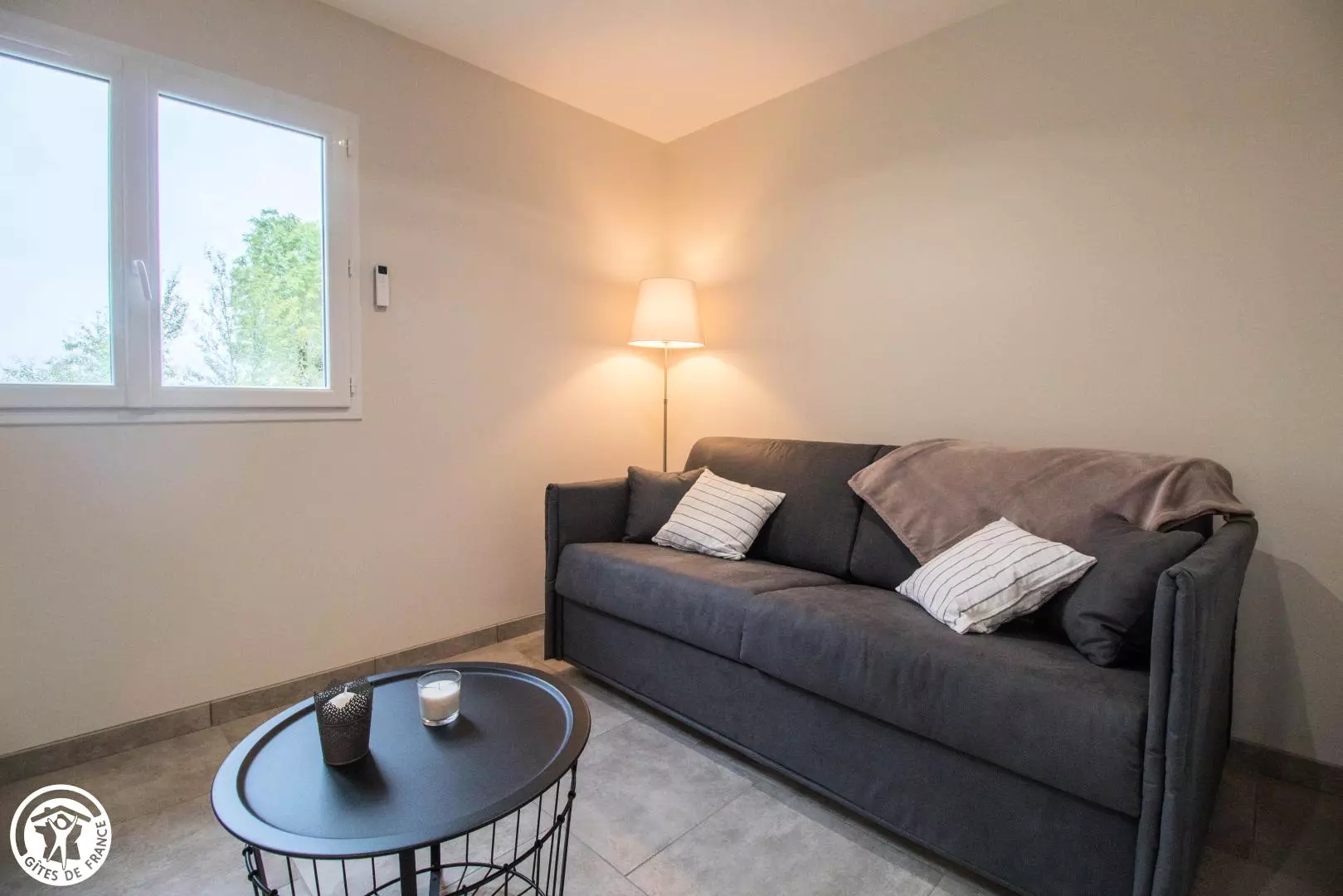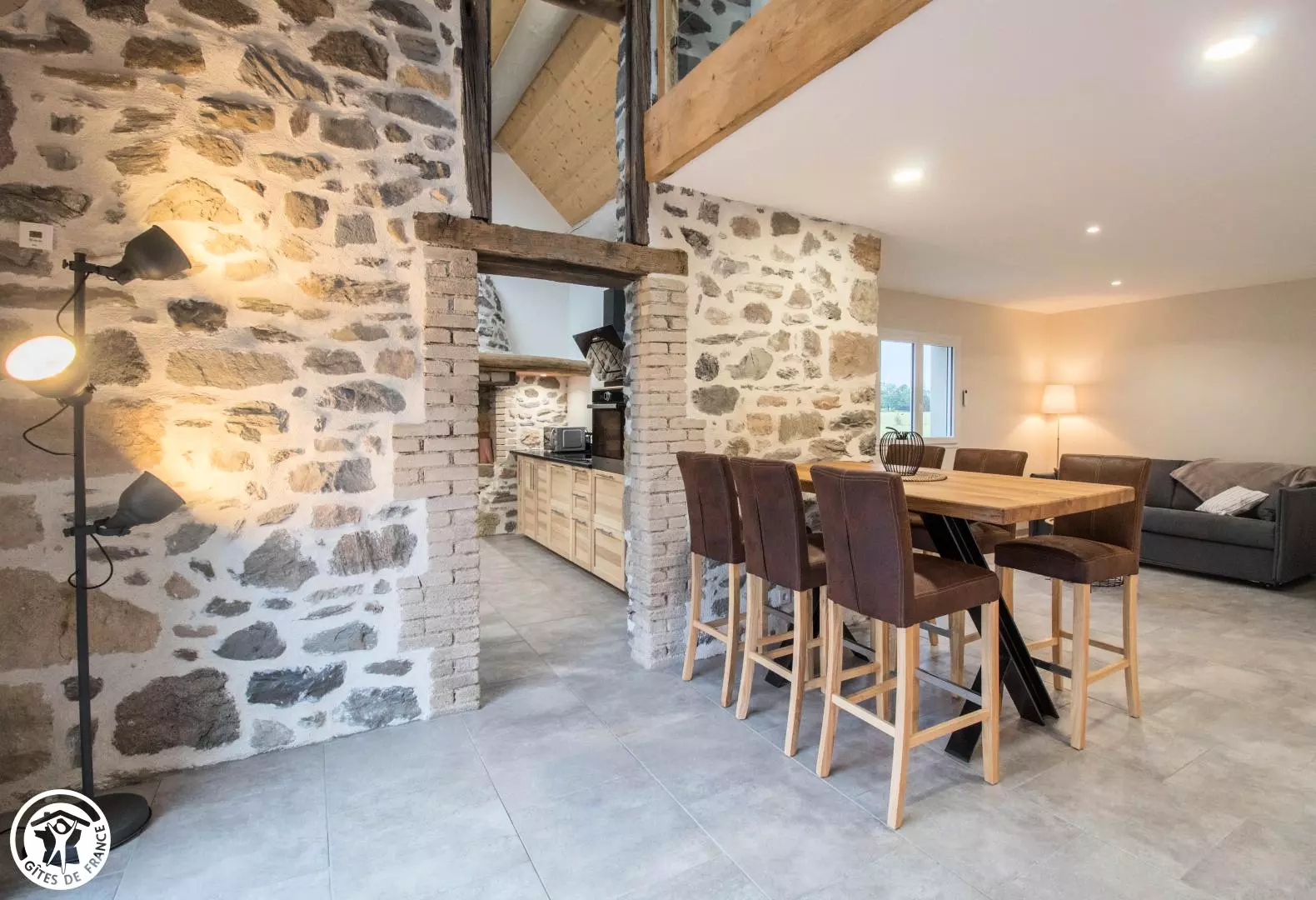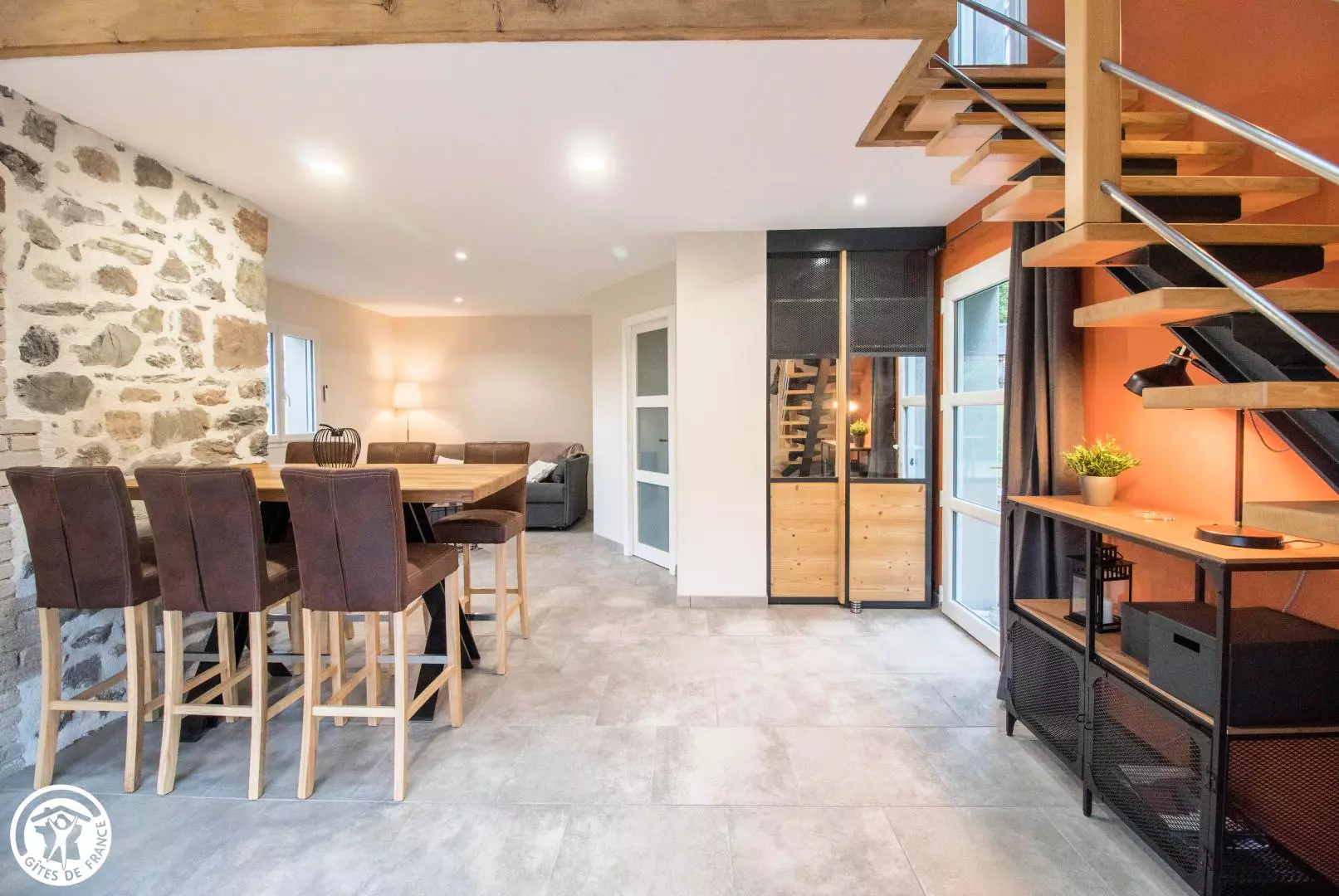 -le séjour/cuisine à la décoration contemporaine et authentique avec vue dégagée sur la nature environnante. Vous admirerez le four à pain d'époque restauré et profiterez du coin salon (2 personnes supplémentaires acceptées sans supplément dans canapé-lit grand confort 160x200). - la salle d'eau/wc. A l'étage : -un bel espace nuit en mezzanine avec un lit 160x200 grand confort. A l'extérieur, une jolie terrasse sans vis-à-vis, salon de jardin et barbecue. De nombreux loisirs : sports de pleine nature (rando, VTT, …), station de ski du Mont Dore à 13 km, station thermale de la Bourboule à 6 km. A proximité de la Banne d'Ordanche.