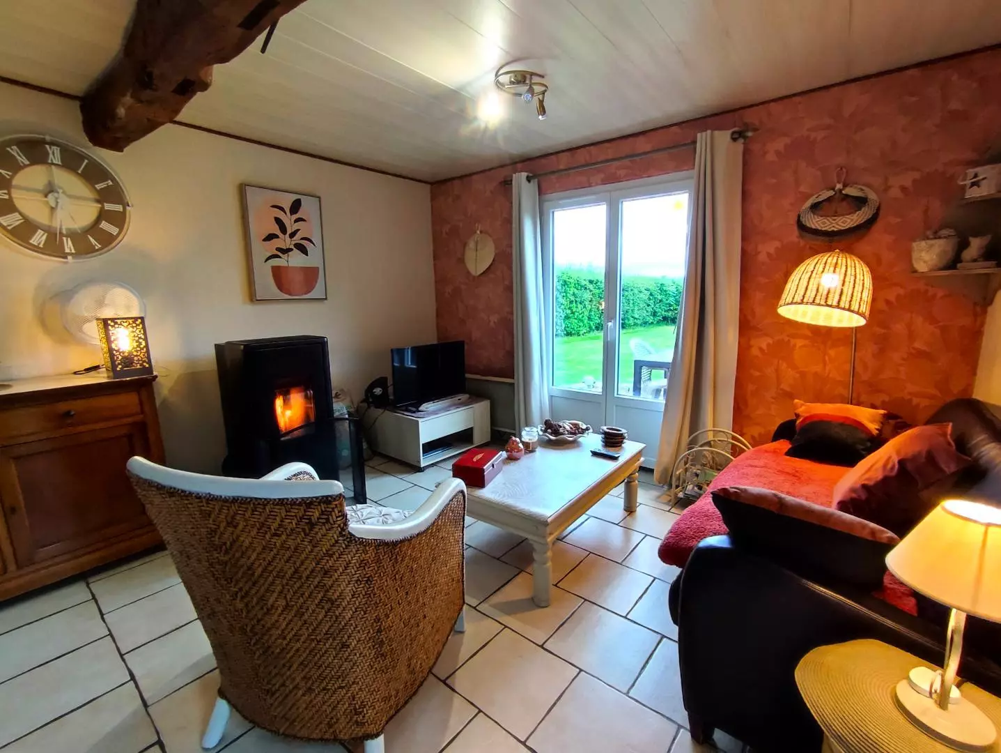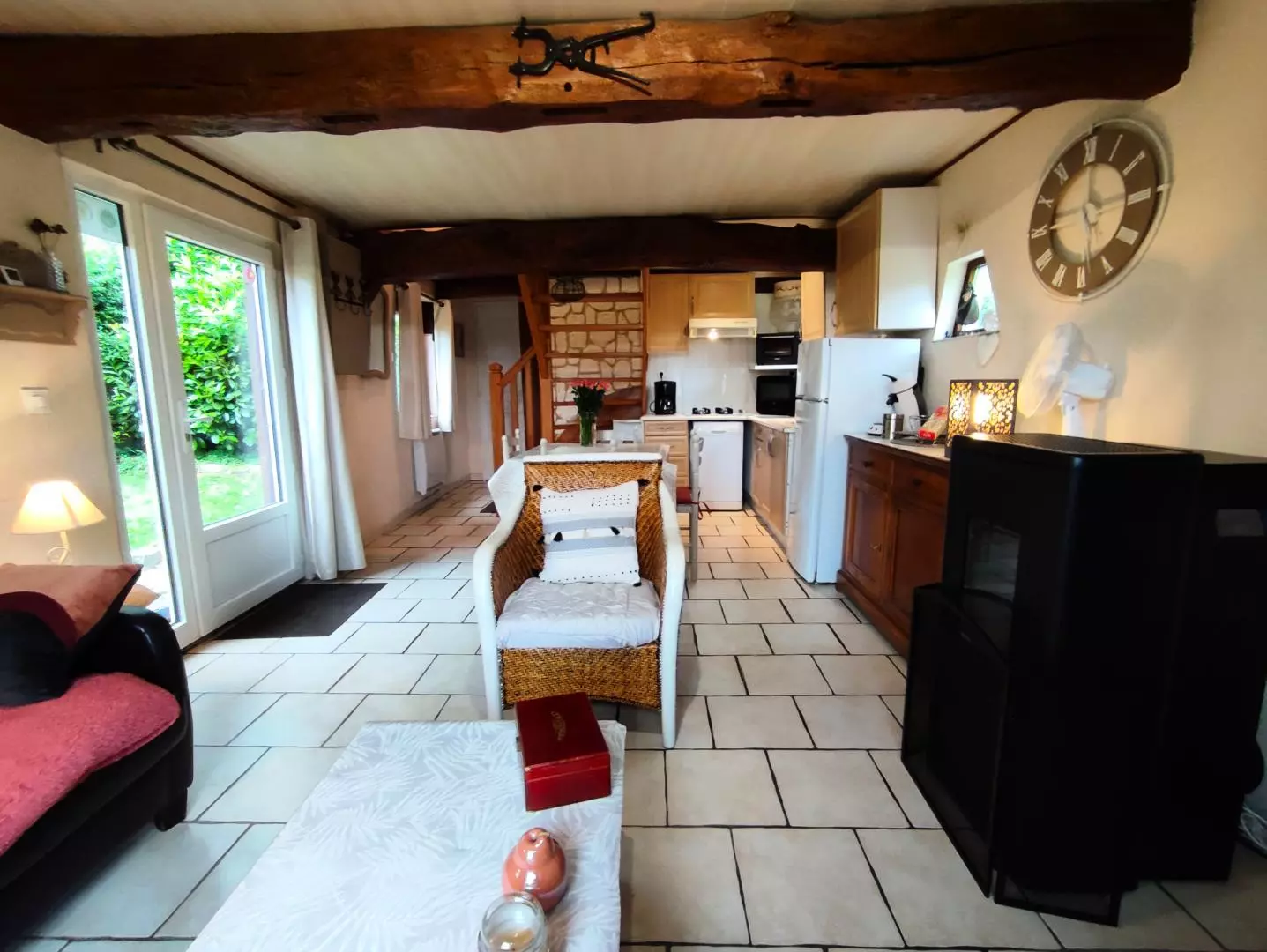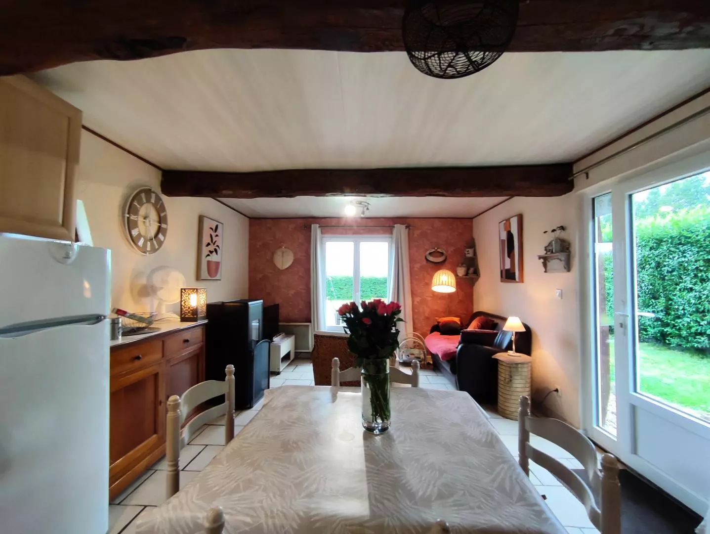 Rez-de-chaussée : - salle-salon avec TV numérique et lecteur DVD, poêle à granulés, coin cuisine aménagée (micro-ondes et lave-vaisselle), - salle d'eau avec douche (lave-linge), - WC indépendant, A l'étage : - 1 chambre (1 lit 2 personnes 160x200cm) avec bureau et TV , - toilettes sèches indépendante, - 1 chambre (1 lit 1 personne 90x200cm et lit bébé sur demande). Chauffage électrique et granulés de bois en sus. Location de linge. Forfait ménage possible. Volets roulant électriques et huisseries neuves. Bonne isolation. Voie verte pour balades à pied ou en vélo et centre aquatique moderne à proximité. Marchés à proximité le jeudi matin et le samedi. Au coeur des curiosités touristiques, avec accès rapide à Rouen et Dieppe, ce charmant gîte normand indépendant, lumineux et décoré avec goût est situé à l'écart de la maison des propriétaires. Jardin clos, portique. Accés WIFI personnel. Nouveau! Poêle à granulés et toilettes sèches séparées à l'étage.