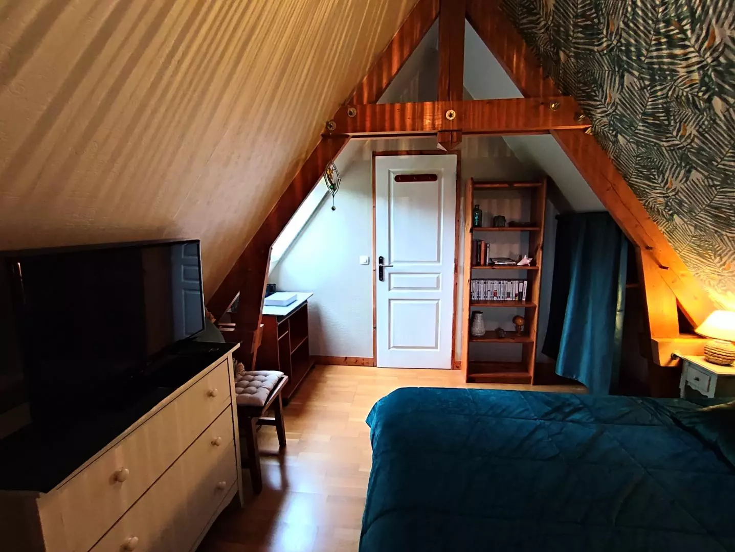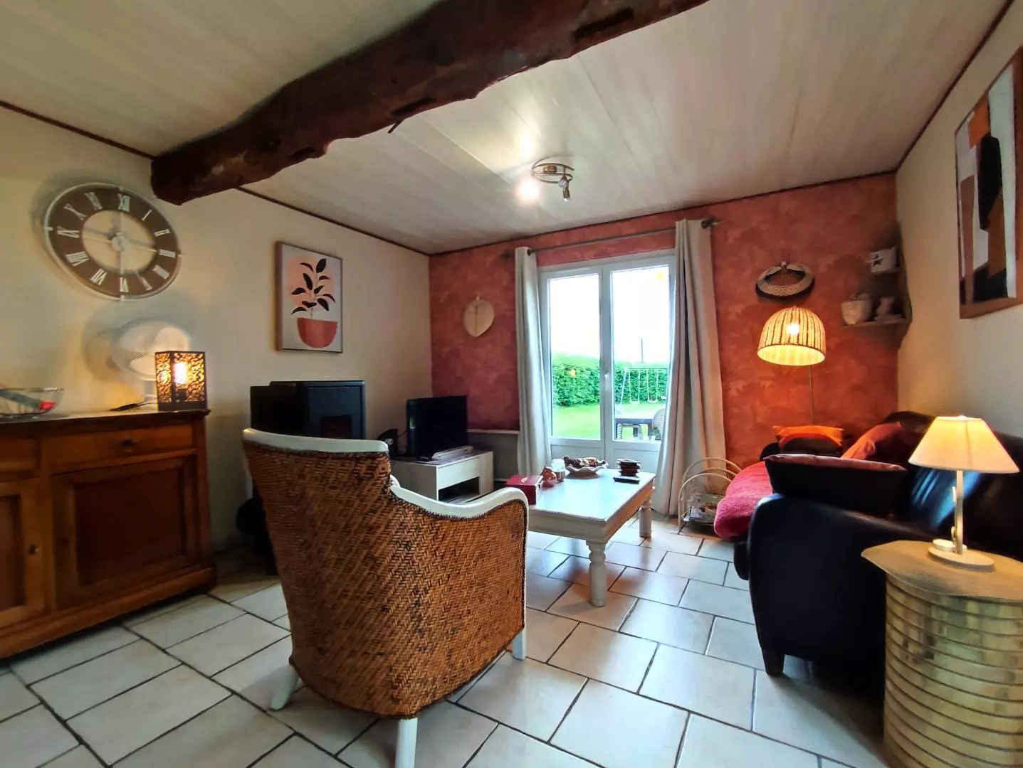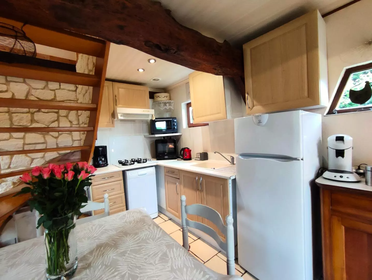 Rez-de-chaussée : - salle-salon avec TV numérique et lecteur DVD, poêle à granulés, coin cuisine aménagée (micro-ondes et lave-vaisselle), - salle d'eau avec douche (lave-linge), - WC indépendant, A l'étage : - 1 chambre (1 lit 2 personnes 160x200cm) avec bureau et TV , - toilettes sèches indépendante, - 1 chambre (1 lit 1 personne 90x200cm et lit bébé sur demande). Chauffage électrique et granulés de bois en sus. Location de linge. Forfait ménage possible. Volets roulant électriques et huisseries neuves. Bonne isolation. Voie verte pour balades à pied ou en vélo et centre aquatique moderne à proximité. Marchés à proximité le jeudi matin et le samedi. Au coeur des curiosités touristiques, avec accès rapide à Rouen et Dieppe, ce charmant gîte normand indépendant, lumineux et décoré avec goût est situé à l'écart de la maison des propriétaires. Jardin clos, portique. Accés WIFI personnel. Nouveau! Poêle à granulés et toilettes sèches séparées à l'étage.