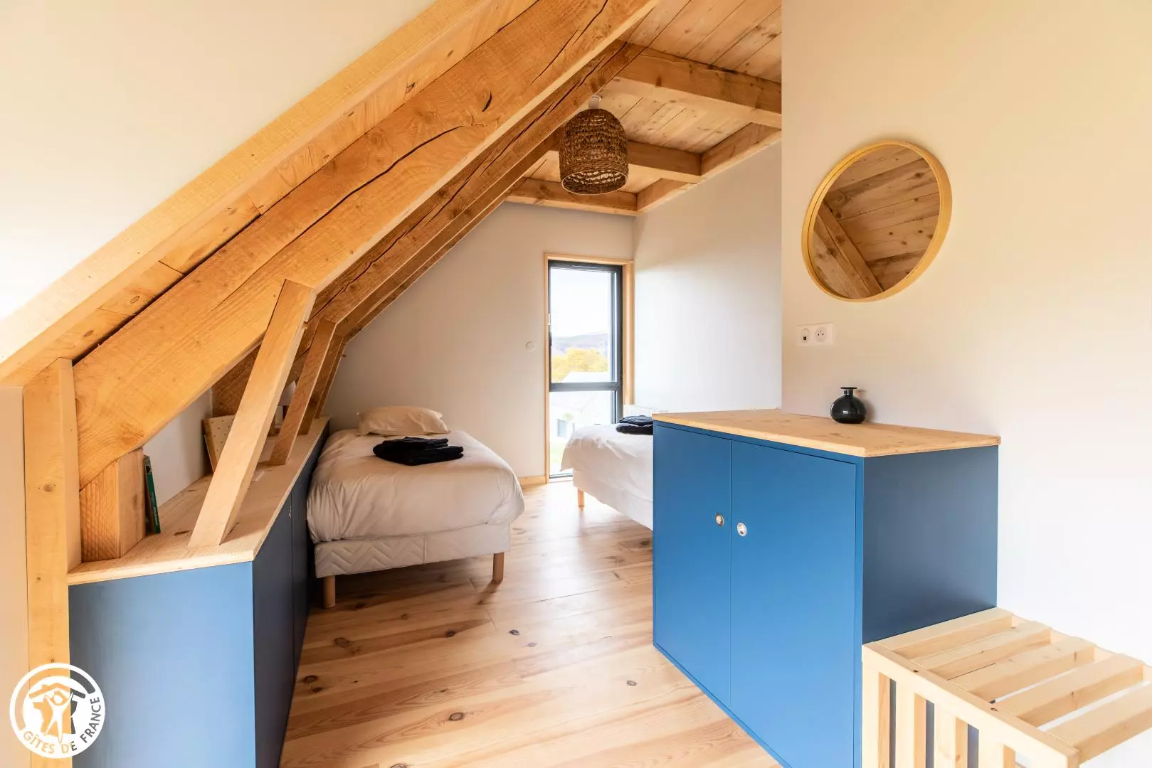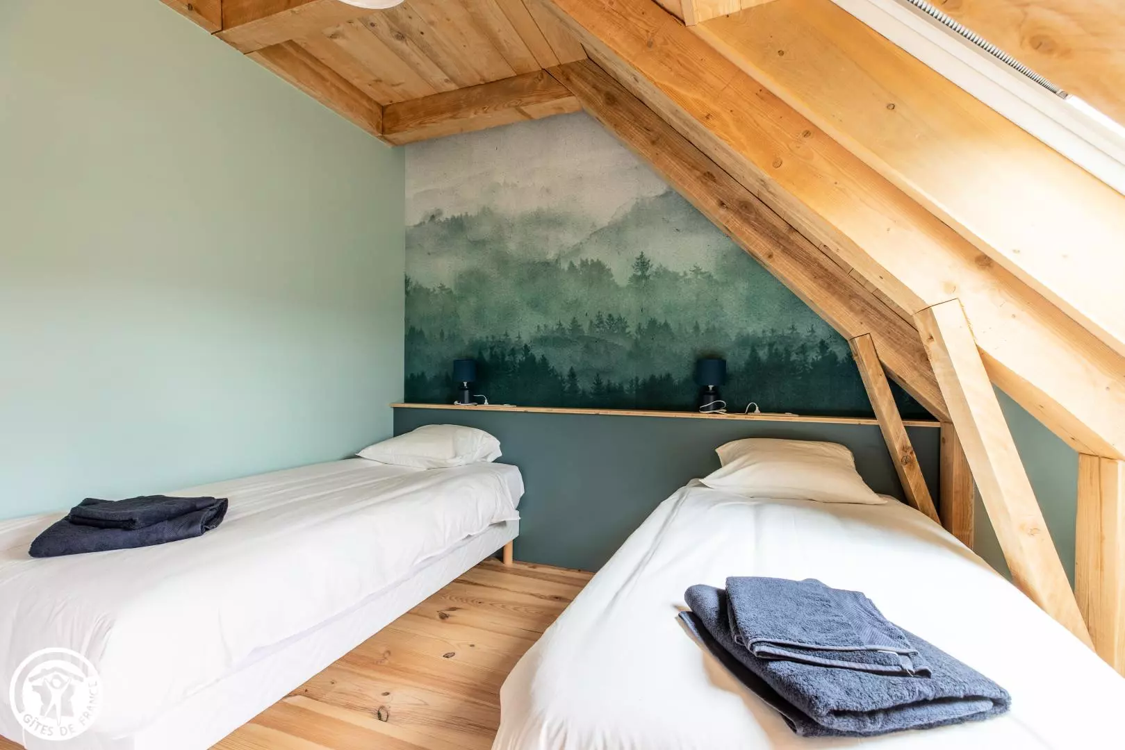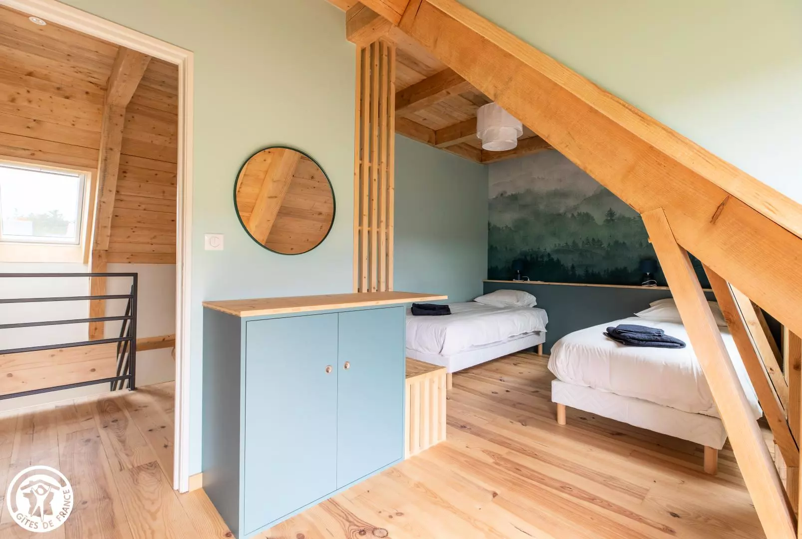 confort et une salle d'eau privative, deux chambres avec chacune deux lits 90 pouvant être accolés, une superbe salle d'eau et un wc indépendant. On aime : les matériaux haut de gamme, la décoration unique et l'agencement parfaitement pensé ! Pour un séjour en toute quiétude : lits faits à votre arrivée, linge de toilette fourni, chauffage et ménage inclus. WIFI. Parking privatif. A l'extérieur, vous profiterez d'un terrain privatif de plus de 3000m², de deux terrasses pour une exposition idéale ainsi que d'un salon de jardin, chaises longues, parasol et d'un barbecue privatif !