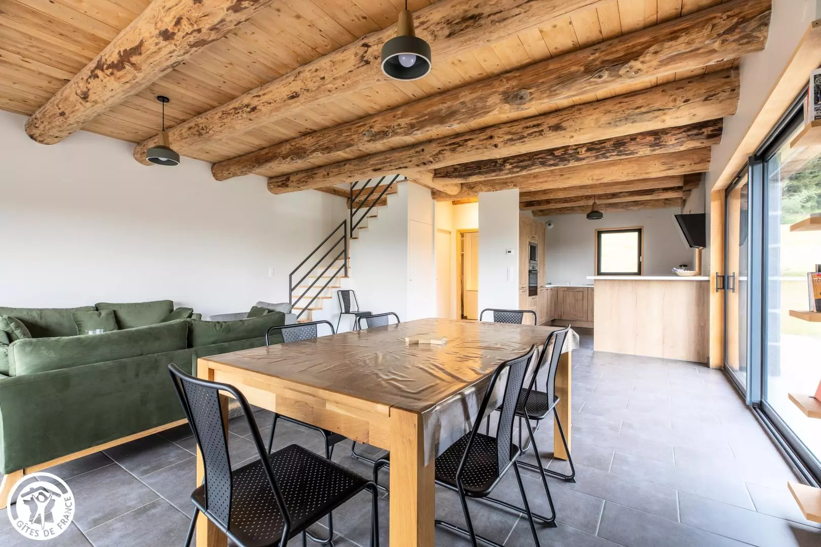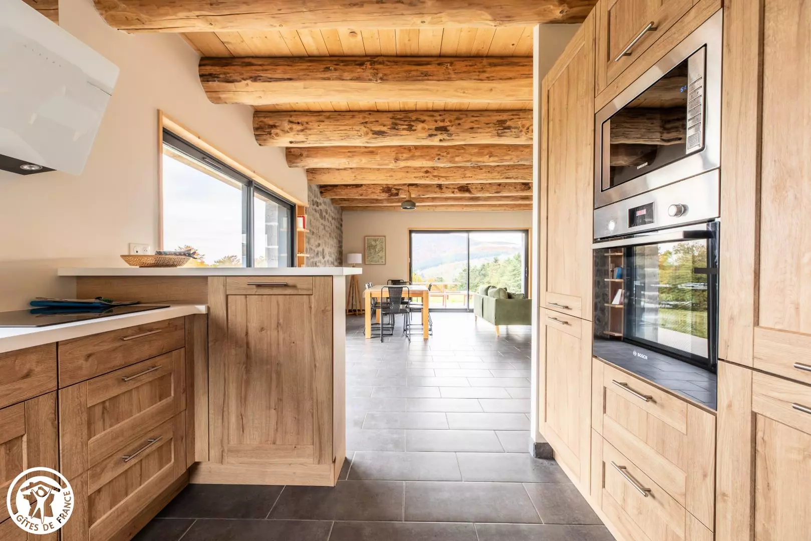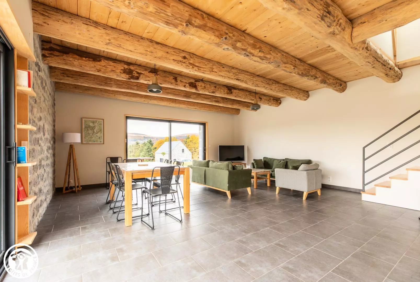 TOUT INCLUS ! Au cœur du Parc des Volcans d'Auvergne, profitez de ce magnifique buron aux prestations haut de gamme et à la vue splendide sur le massif du Sancy ! Un séjour placé sous le signe de la convivialité et du confort au grand air n'attend plus que vous ! Le gîte est situé au Mont-Dore, point de chute parfait pour des vacances réussies: à deux pas du magnifique lac du Guéry, station de ski du Mont-Dore à seulement 7.4 km, sports de pleine nature, ski de fond, accrobranche et tyrolienne, le puy de Sancy, les thermes du Mont-Dore, patinoire, bowling...Le buron se compose au rez-de-chaussée d'une vaste et agréable pièce à vivre, véritable cœur de vie de la maison, avec de grandes ouvertures donnant sur le massif et la nature environnante ! Vous profiterez d'une superbe cuisine tout équipée donnant sur la salle à manger et sur le salon cosy dans une ambiance montagne et moderne ! Au même niveau, une entrée/buanderie et un wc indépendant. A l'étage, une chambre avec un lit 160 grand confort et une salle d'eau privative, deux chambres avec chacune deux lits 90 pouvant être accolés, une superbe salle d'eau et un wc indépendant. On aime : les matériaux haut de gamme, la décoration unique et l'agencement parfaitement pensé ! Pour un séjour en toute quiétude : lits faits à votre arrivée, linge de toilette fourni, chauffage et ménage inclus. WIFI. Parking privatif. A l'extérieur, vous profiterez d'un terrain privatif de plus de 3000m², de deux terrasses pour une exposition idéale ainsi que d'un salon de jardin, chaises longues, parasol et d'un barbecue privatif !