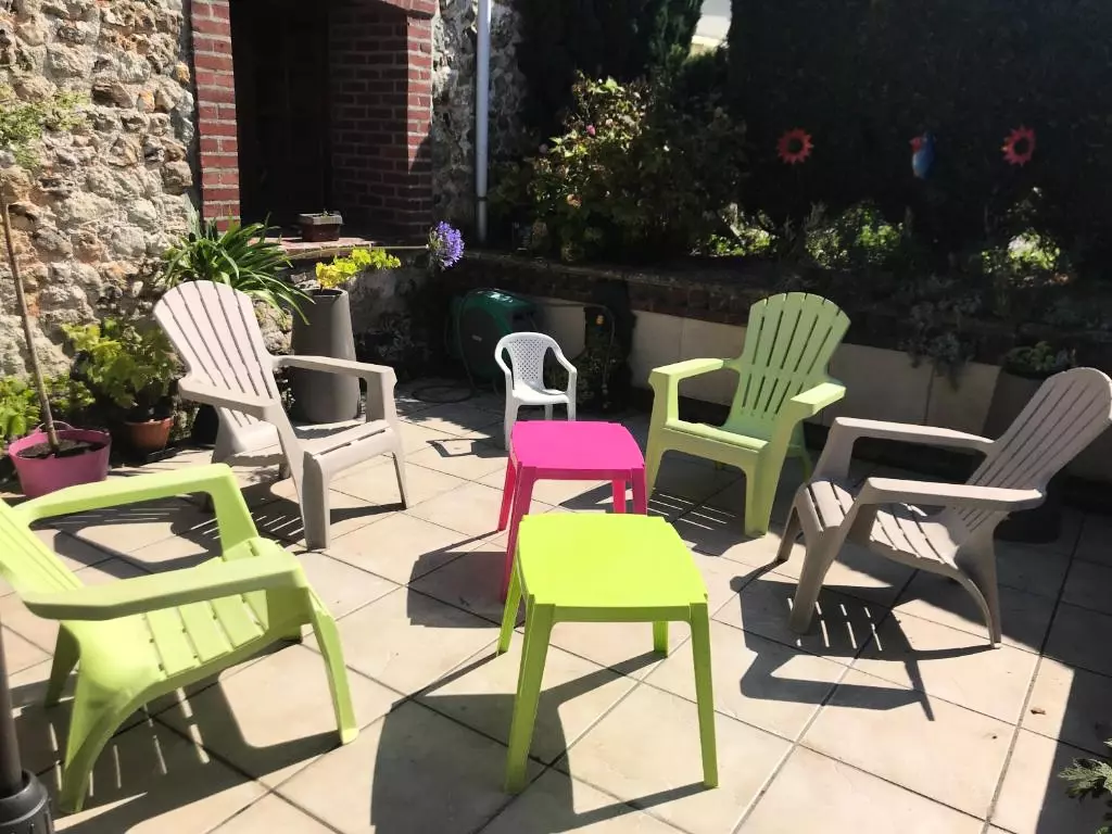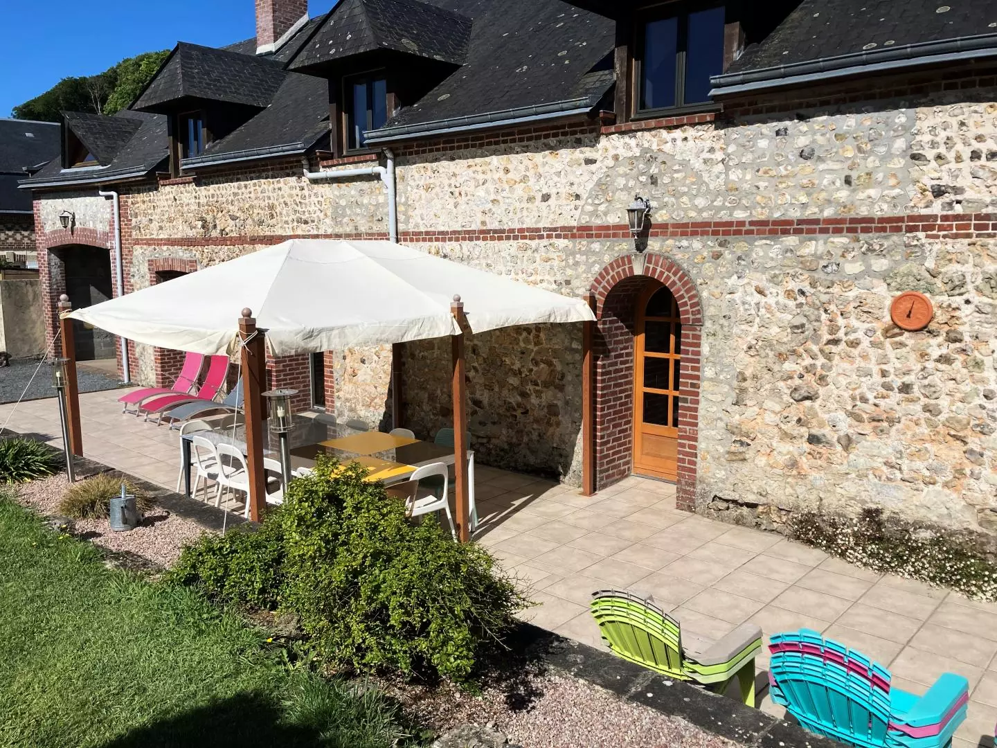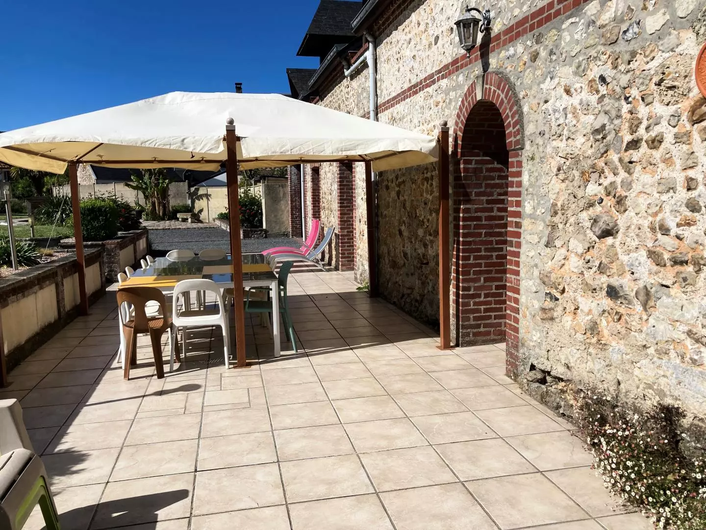 Aménagée dans une maison de briques et silex, à proximité de l'église, la maison est exposée Sud Ouest (soleil sur la terrasse de 11h à 22h l'été).