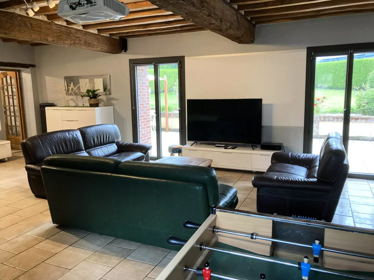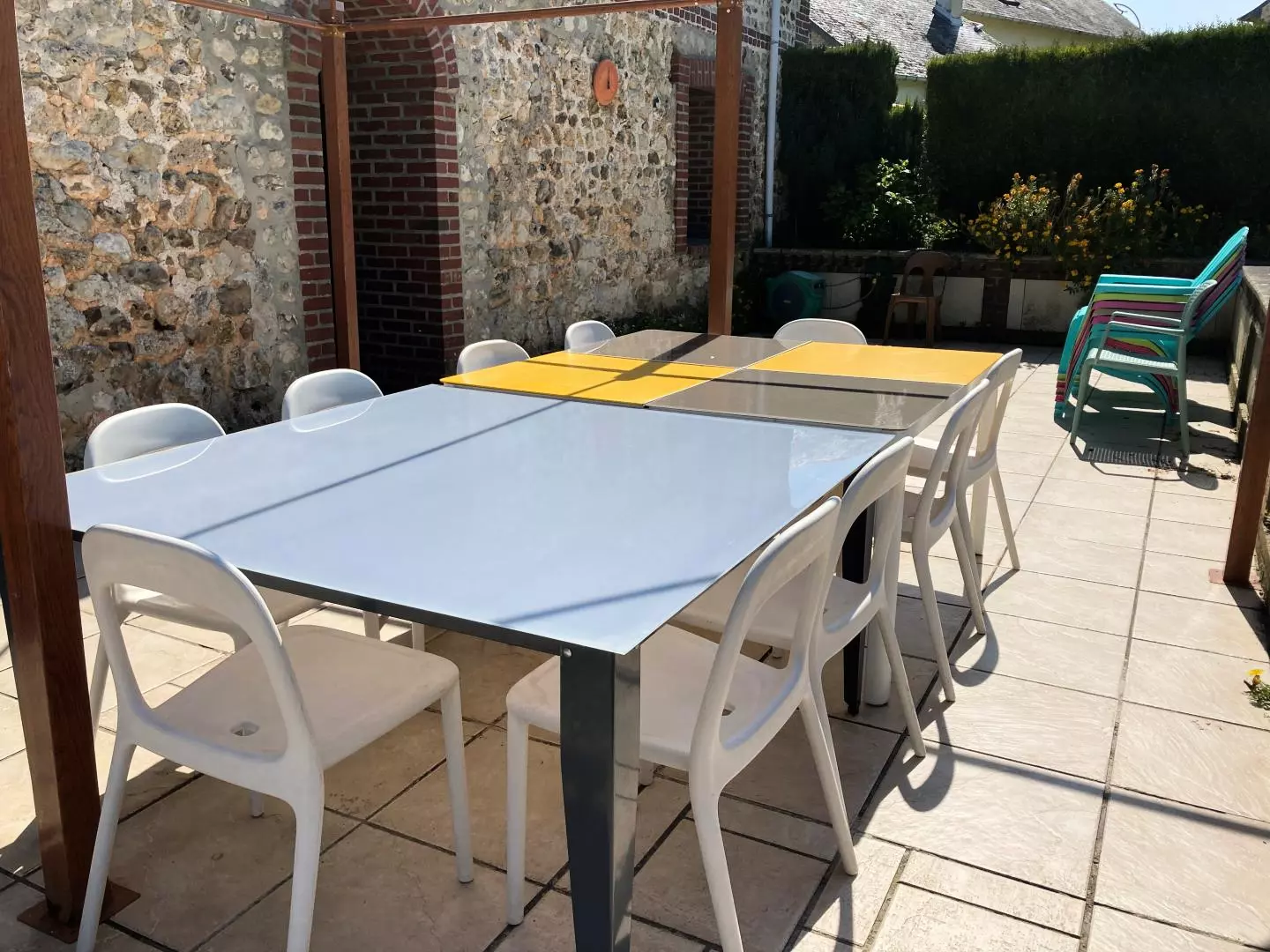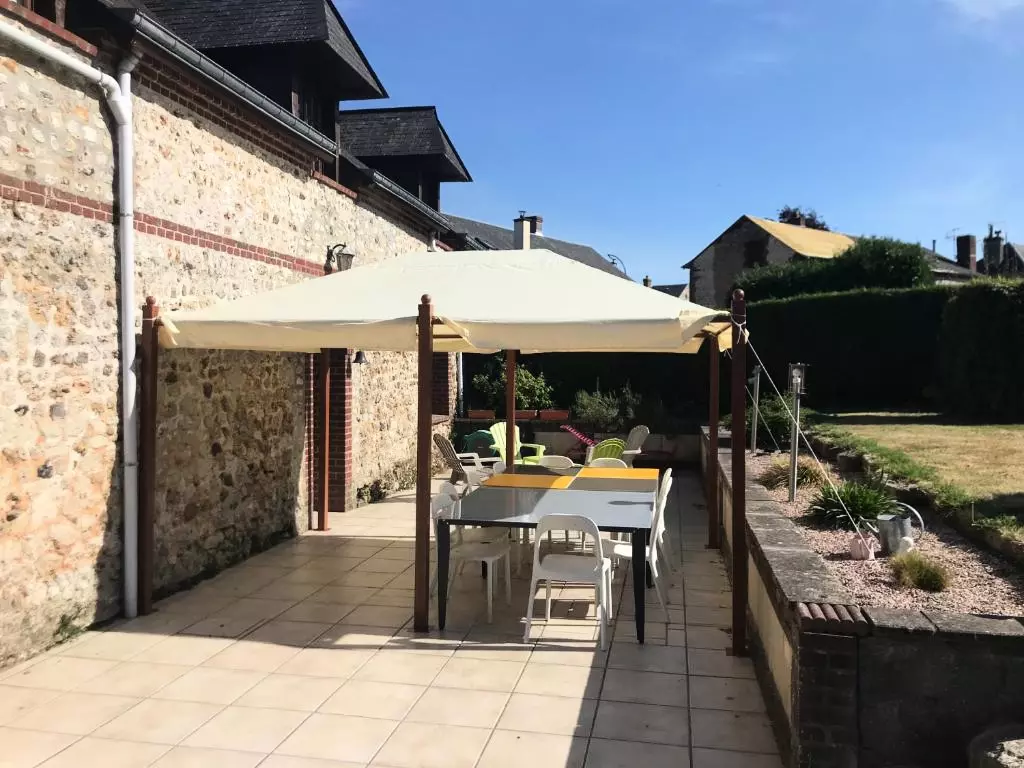 Aménagée dans une maison de briques et silex, à proximité de l'église, la maison est exposée Sud Ouest (soleil sur la terrasse de 11h à 22h l'été).