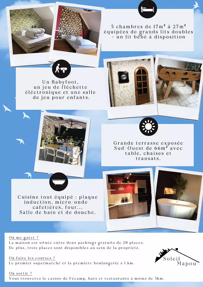 Fécamp : 5 km : plage, gare, cinéma, Woody Park, Loisirs Jet Fécamp, Coffee Bike, sorties en mer sur vieux gréements, excellents restaurants.