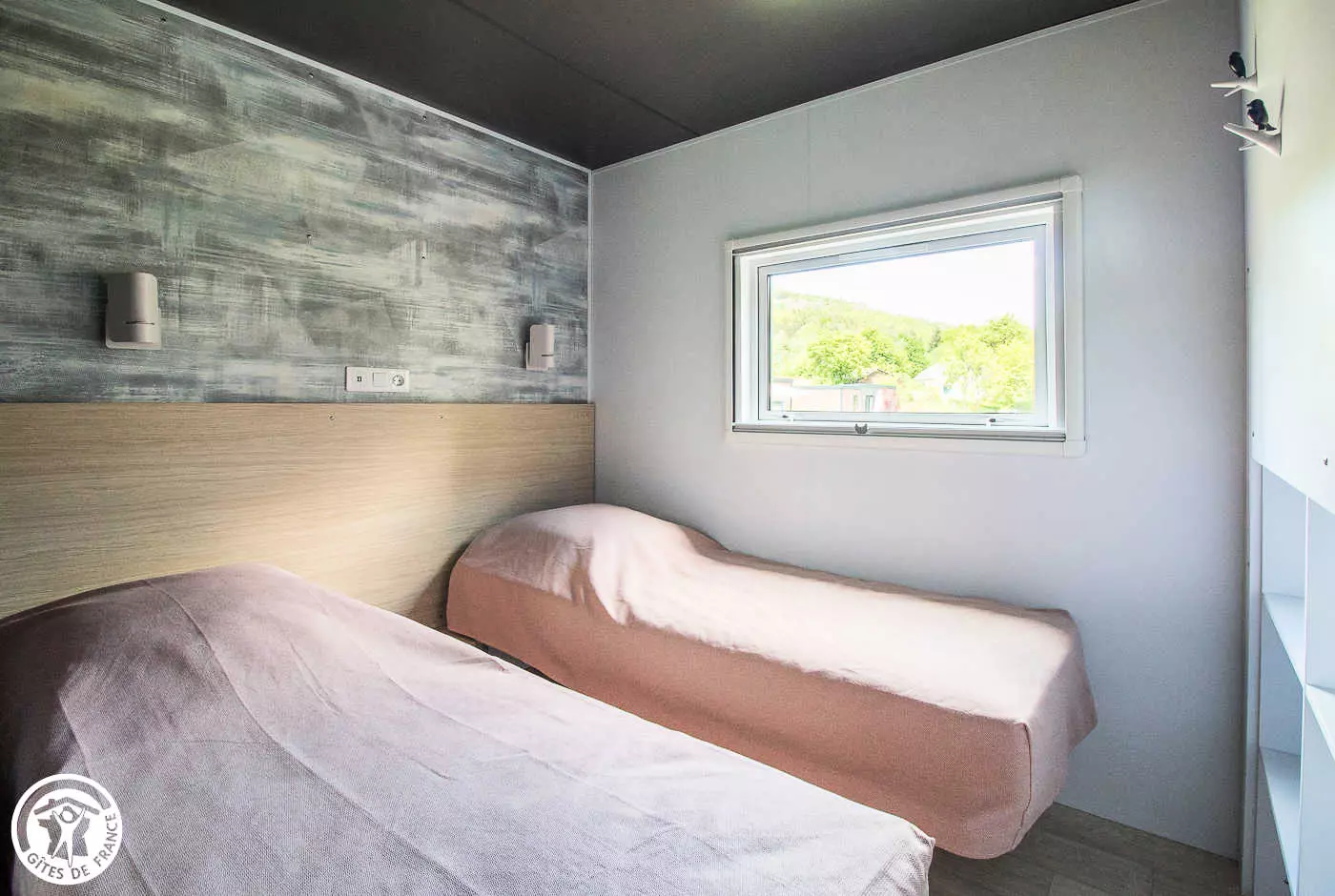 D'une superficie totale de 35m² + 18m² de terrasse, vous serez étonné par l'agencement ergonomique qui permet d'avoir de la place. Vous trouverez une pièce de vie avec cuisine entièrement équipée, salon et table de salle à manger. 1 chambre avec 1 lit 160x200 et 1 chambre avec 2 lits 80x190. Chacune des chambres dispose d'une salle d'eau et d'un WC. A l'extérieur vous aurez le plaisir de passer de bons moments sur la terrasse avec ses chaises longues, son salon de jardin et son barbecue ou sur le terrain de pétanque commun aux 6 cottages. La capacité maximale est de 4 personnes, pas de possibilité de bébé en supplément si 4 personnes. Pas de lave-linge et pas de possibilité de location de linge. Sont fournis : alaises, taies d'oreillers et couettes (housses de couette non fournies, à prévoir). Les commerces et services sont à Chambon-sur-Lac et Murol à seulement 2 km. Fromagerie (produits d'Auvergne et dépôt de pain), restaurant, pizzeria, tabac journaux à proximité immédiate.