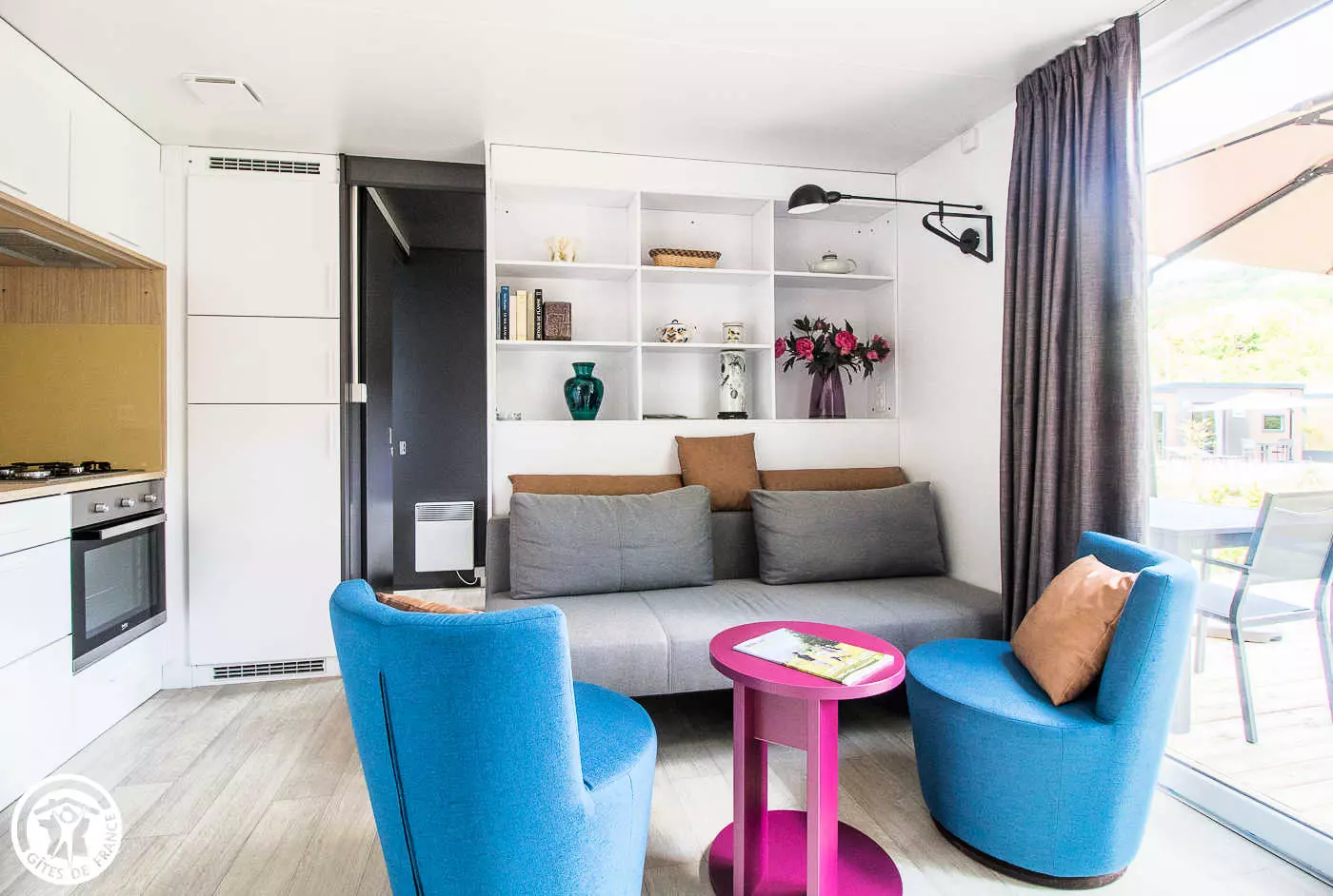 Venez séjourner dans l'un de ces six gîtes premium à deux pas du Lac Chambon. Ces nouveaux cottages dernière génération répondent à une vision plus architecturale de la résidence mobile. Les matériaux, utilisés à l'intérieur comme à l'extérieur, affichent une grande sobriété, tout en étant contemporain et sophistiqués. Idéalement situé, vous pourrez profiter du lac Chambon mais aussi des nombreuses activités alentours : randonnée dans la vallée de Chaudefour, ski à Super Besse, découverte du patrimoine gastronomique à Saint-Nectaire…