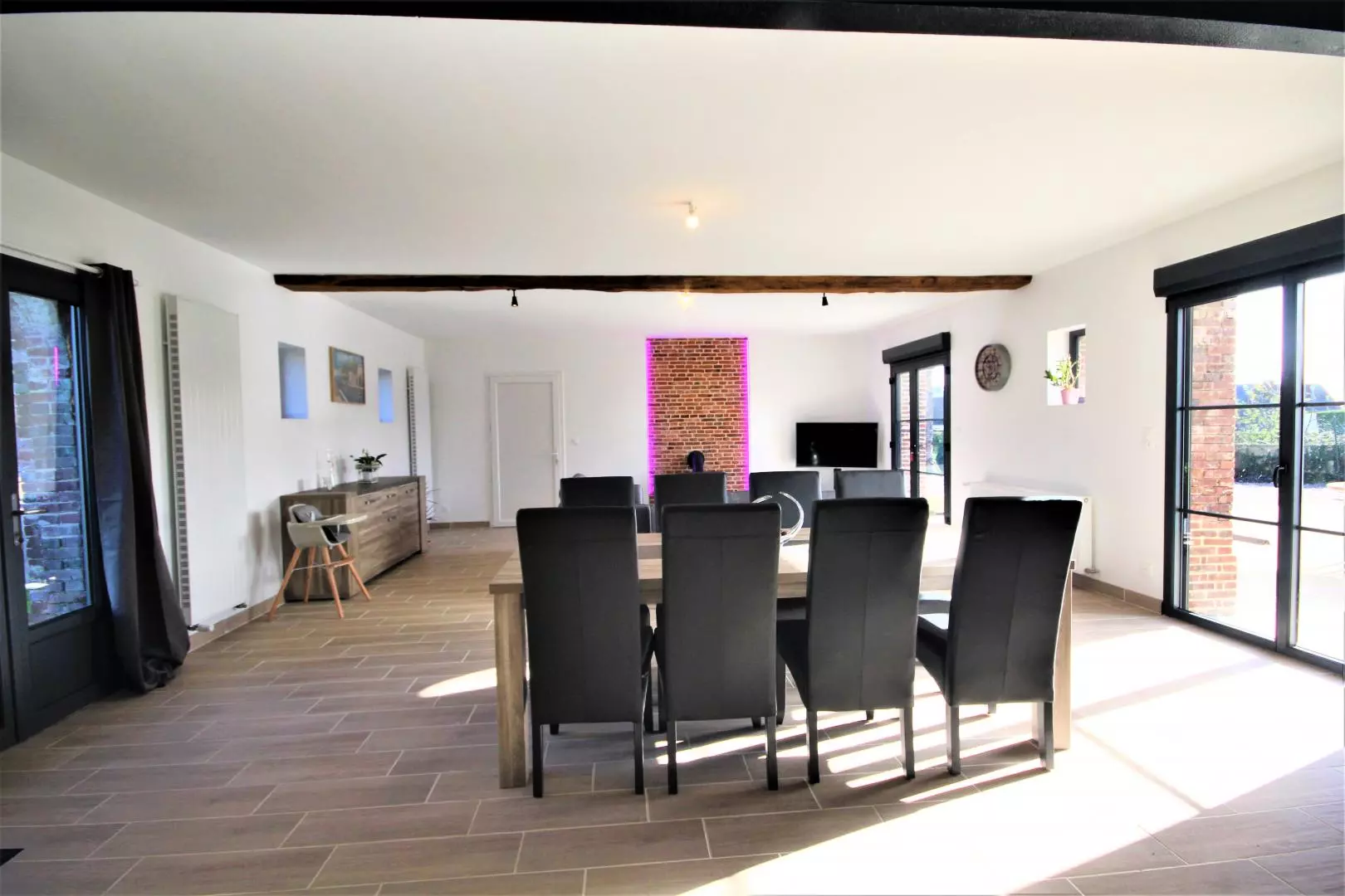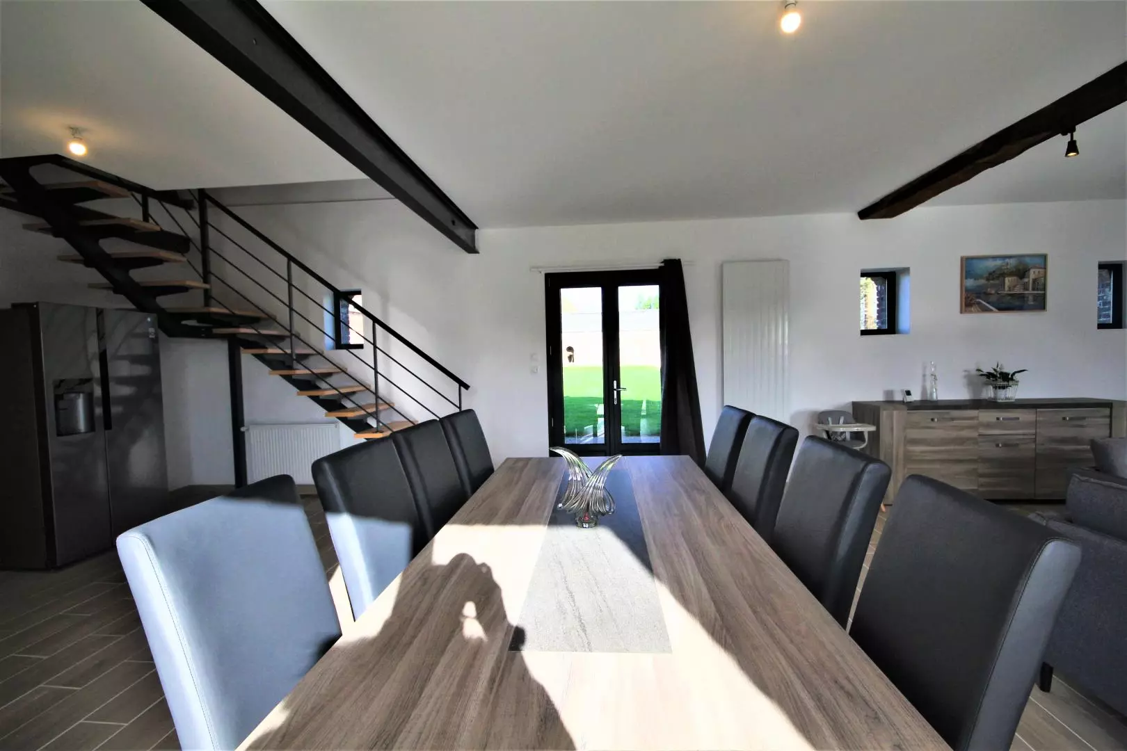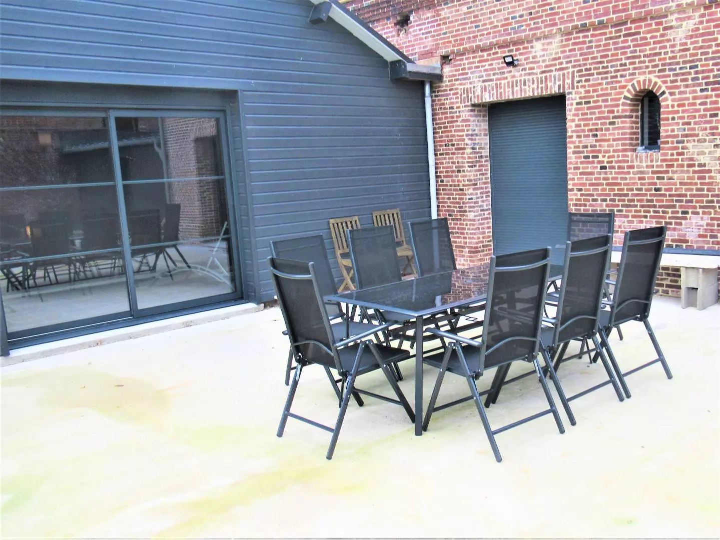 Terrasse avec salon de jardin et barbecue. Découvrez ce gîte d'exception alliant élégance et modernité, conçu pour un séjour placé sous le signe du confort et du bien-être. Profitez d'une piscine privative couverte et chauffée à 30°C toute l'année, d'un jardin avec terrasse ensoleillée, et de spacieux volumes décorés avec soin.