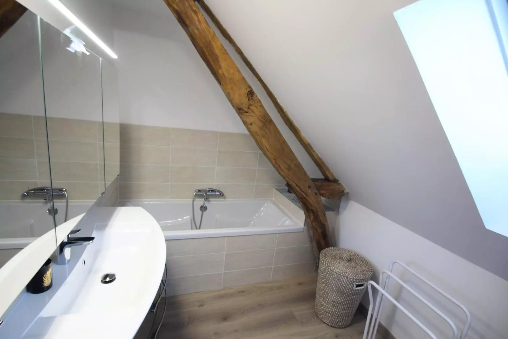 • salle de bains avec accès indépendant, sèches-serviettes électrique et wc,