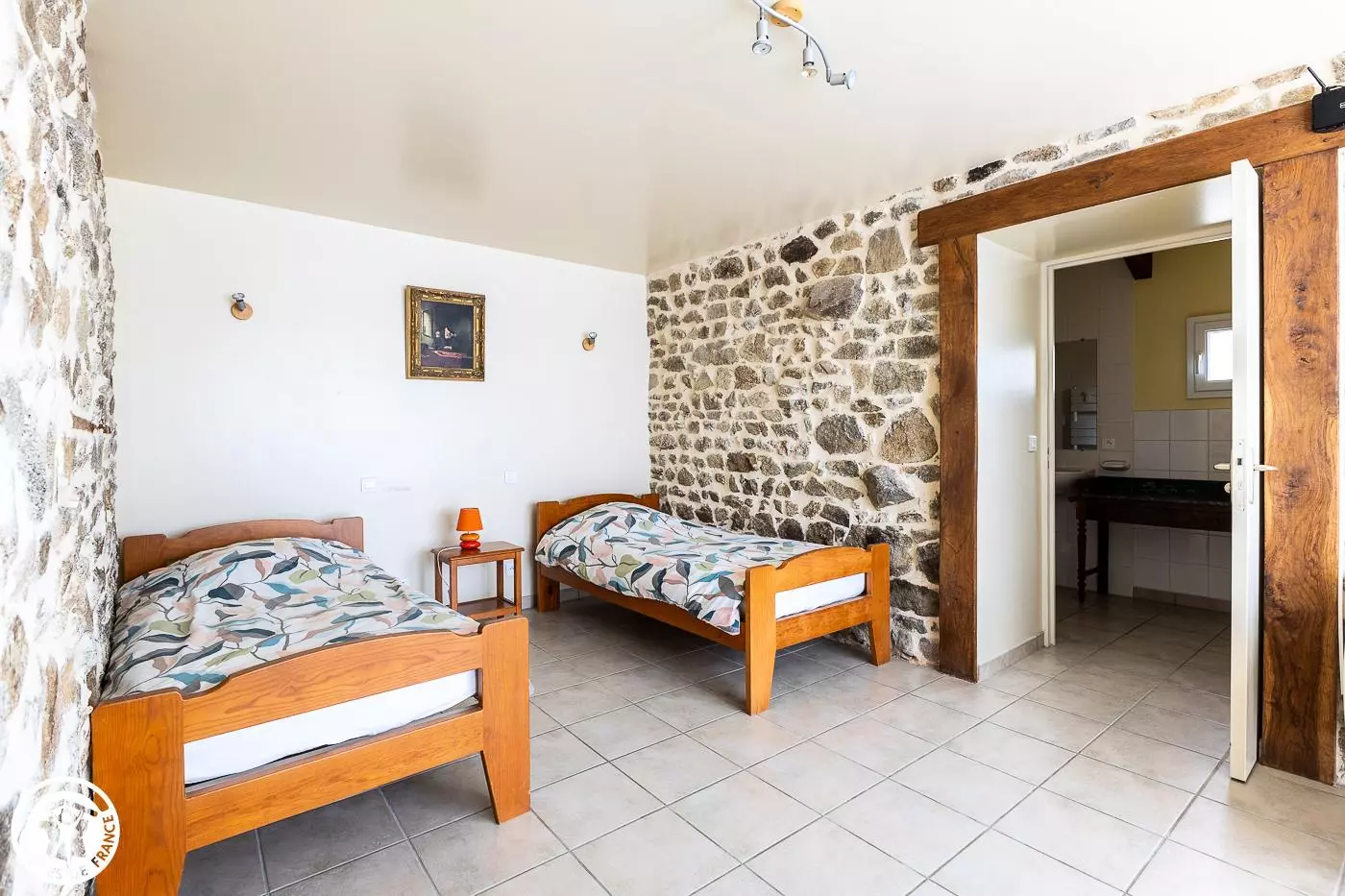 Station thermale : Châteauneuf-les-Bains 10 km. A prox : château de Pionsat, gorges de la Sioule, Vulcania, site du Puy-de-Dôme. A prox: pêche truite et mouche. Gite indépendant. Au rez-de-chaussée : salle de séjour (poêle à bois, 25€/demi-stère), coin-cuisine, wc, 1 chambre (2 lits 1 pers.), salle d'eau/wc douche italienne. Au 1er étage : 1 chambre (3 lits 1 pers.), 1 chambre (1 lit 2 pers.), lit bébé, salle d'eau, wc. Terrain clos. Draps fournis. bois fourni tarif selon consommation. Commerces et services à Saint-Gervais 7km et Pionsat 7km. accès Wifi. 1 chambre adaptée aux personnes à mobilité réduite. Attention : Forfait ménage obligatoire pour les courts séjours