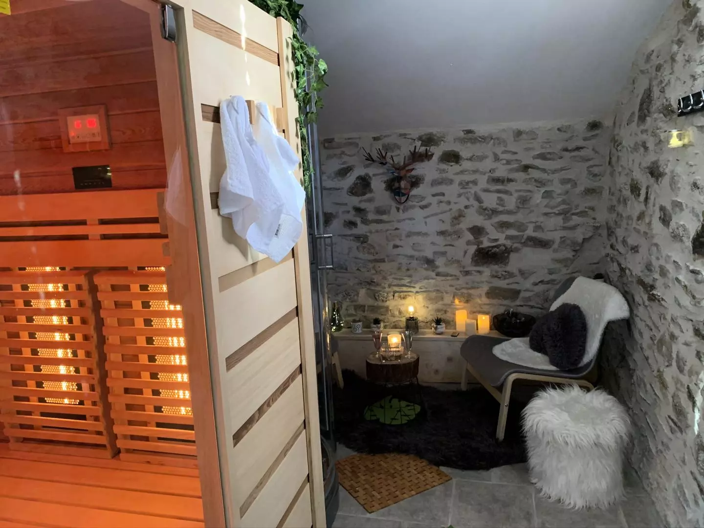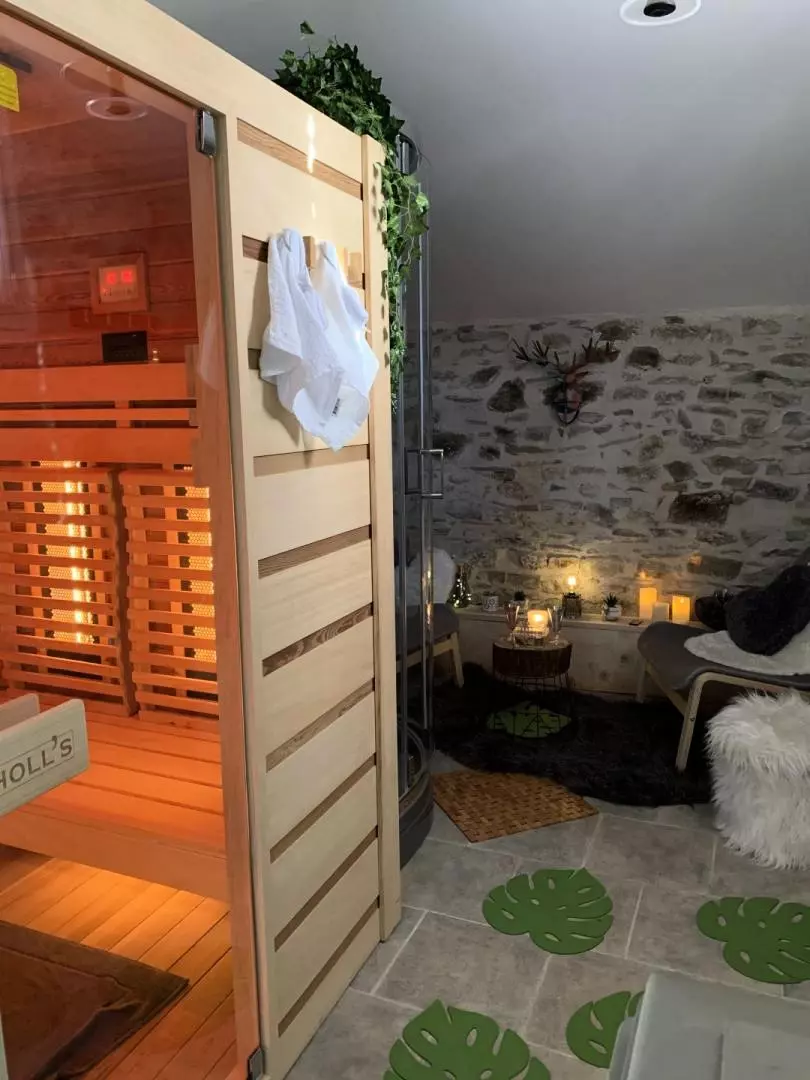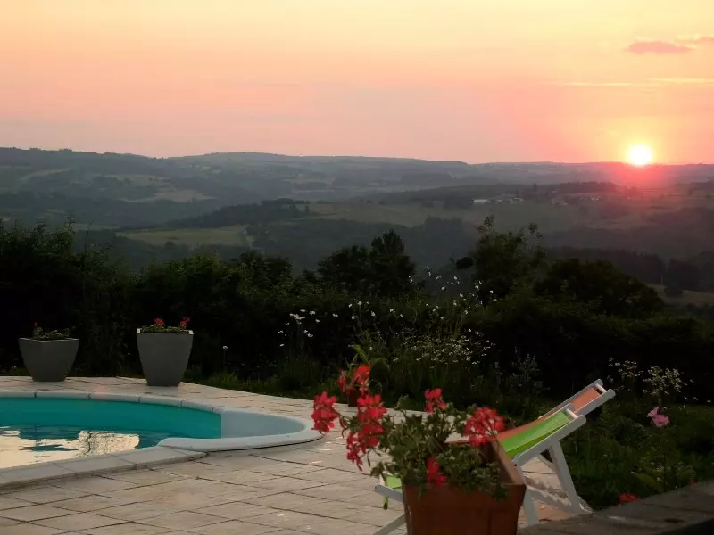 Profitez de la vue imprenable depuis la piscine chauffée, disponible du 1er mai au 30 septembre. Une cuisine d'été et un sauna complètent ce cadre idyllique, parfait pour la détente et le ressourcement. Venez découvrir ce havre de paix et de bien-être au cœur d'une nature préservée. Le gîte se compose au rez de chaussée :