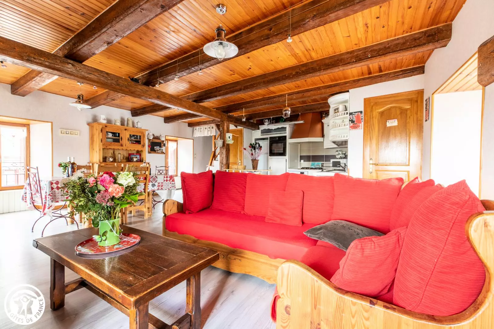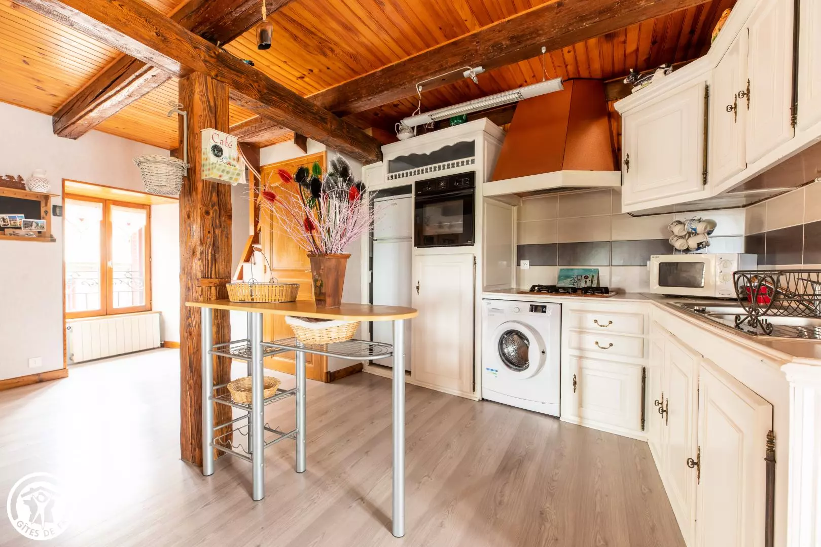 Bel appartement rénové dans une maison de caractère typique au cœur de la cité médiévale de Besse, près des remparts et du château du Bailly, à proximité de tous les commerces et des animations. Appartement au 2ème étage (entrée commune avec l'appartement du 1er étage). Au premier niveau : grande pièce à vivre lumineuse (50 m²), vue impressionnante sur la campagne, WC. A l'étage : 1 chambre avec 1 lit 140 avec balcon : magnifique vue sur les toits de Besse ,1 chambre avec 2 lits 90 vue sur la campagne, 1 chambre avec 1 lit 140, balcon avec vue dominante sur le château du Bailly et le pic St Pierre, salle de bain avec baignoire et douche, WC. (à chaque étage indépendant). Chauffage au fuel selon consommation non compris, un relevé de compteur est fait à l'arrivée et au départ. Espace extérieur en bas de la maison avec salon de jardin, commun avec un autre appartement. Vous serez idéalement situé pour flâner dans les rues de Besse, ou faire des randonnées dans le Massif du Sancy, sans oublier le ski l'hiver à la station de Super-Besse. Commerces et services sur place : restaurants, boutiques, …