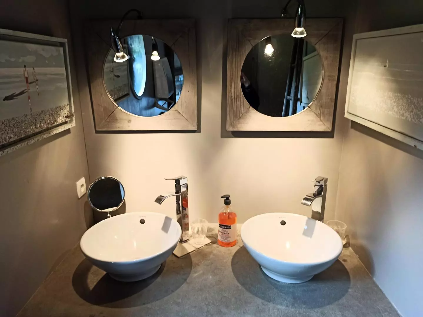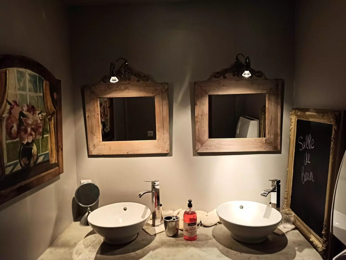• Salle d'eau type douche italienne privative ouverte sur chambre avec WC cloisonnés privatifs (double vasque et sèche-cheveux),
