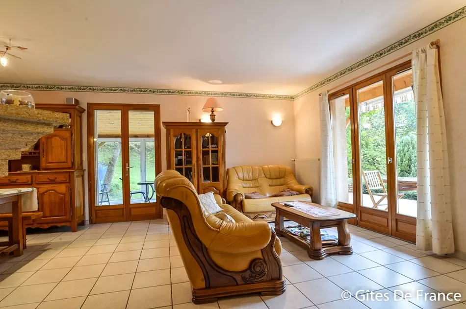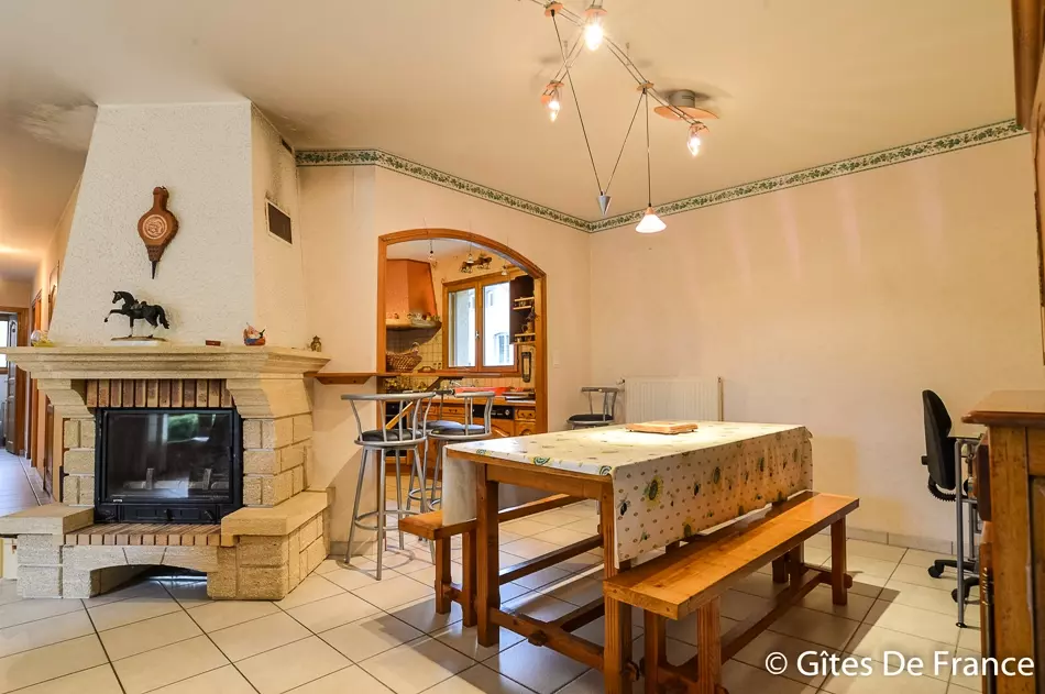-une grande pièce de vie avec un salon et une salle à manger équipée d'une cheminée très appréciée après une journée de ski ou de randonnée en montagne - une cuisine équipée ouverte sur le séjour