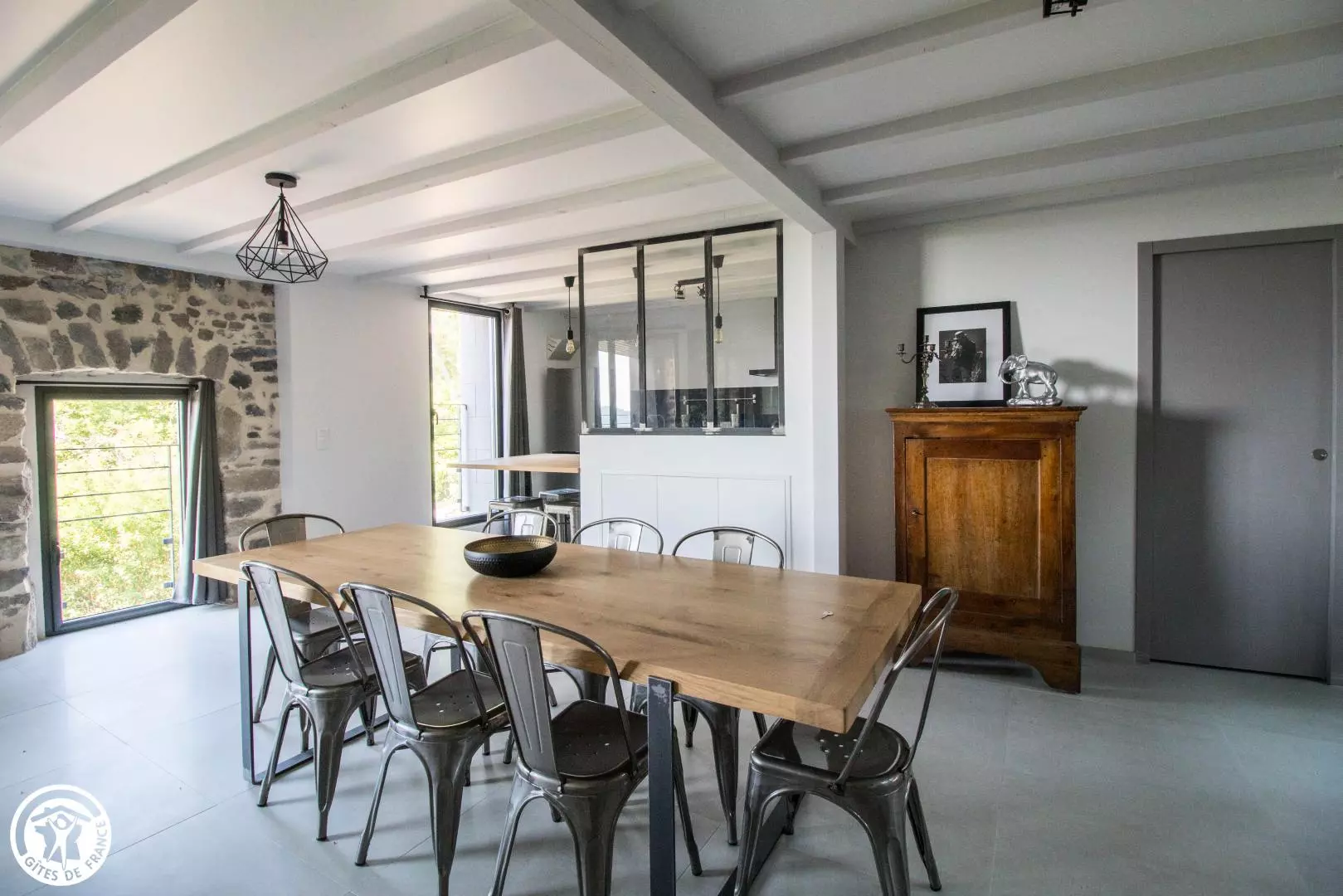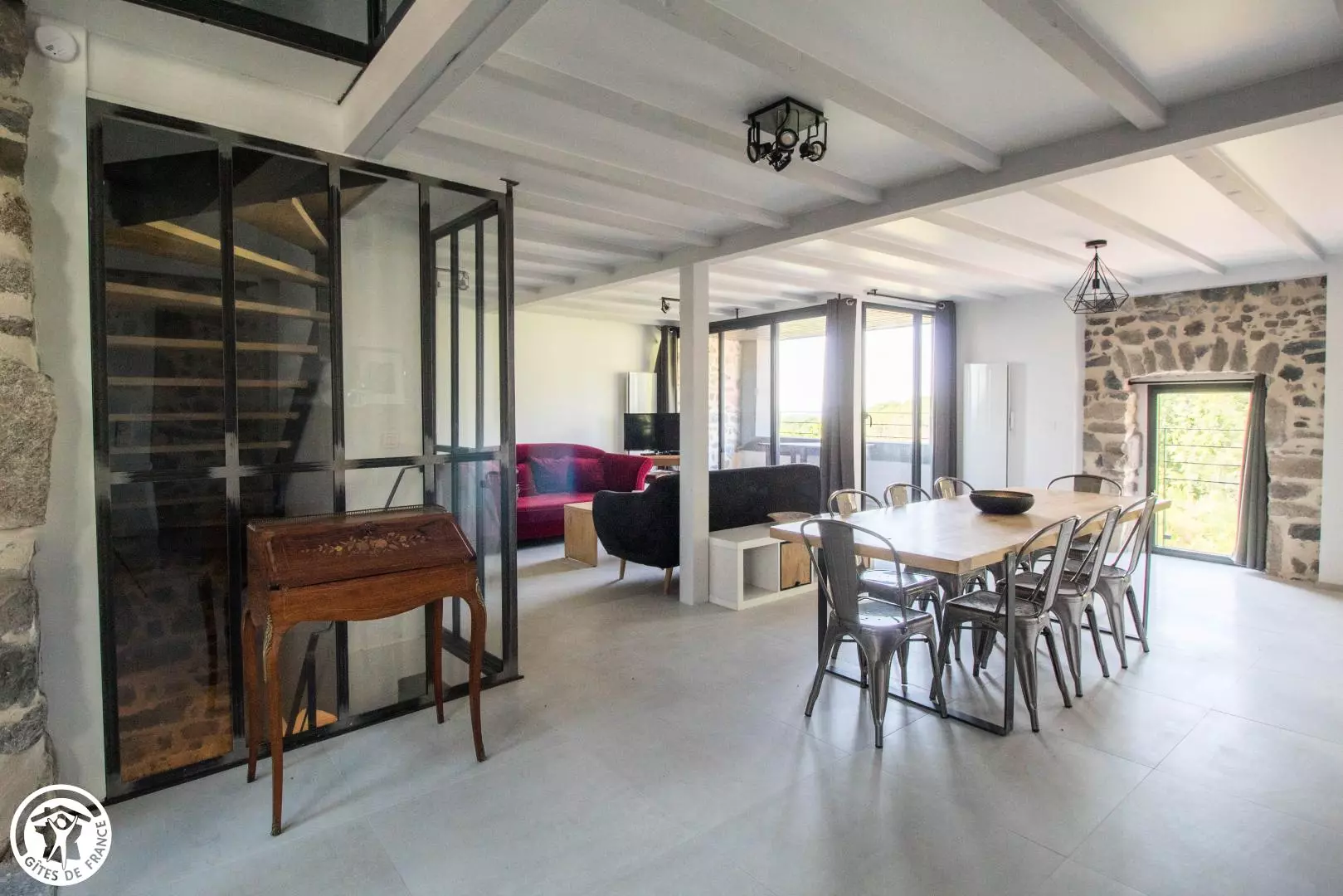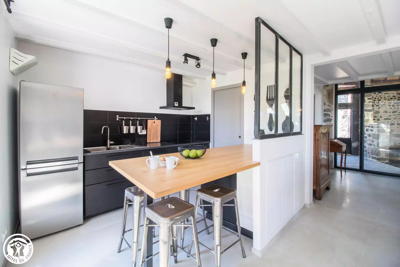 Profitez de ce superbe gîte, du sauna, des terrasses et du grand jardin d'hiver ! Séjournez en tribu au cœur du Parc Naturel Régional des Volcans d'Auvergne. Maison de bourg en pierre située dans le charmant village d'Olloix. Elle se compose au rez-de-chaussée :