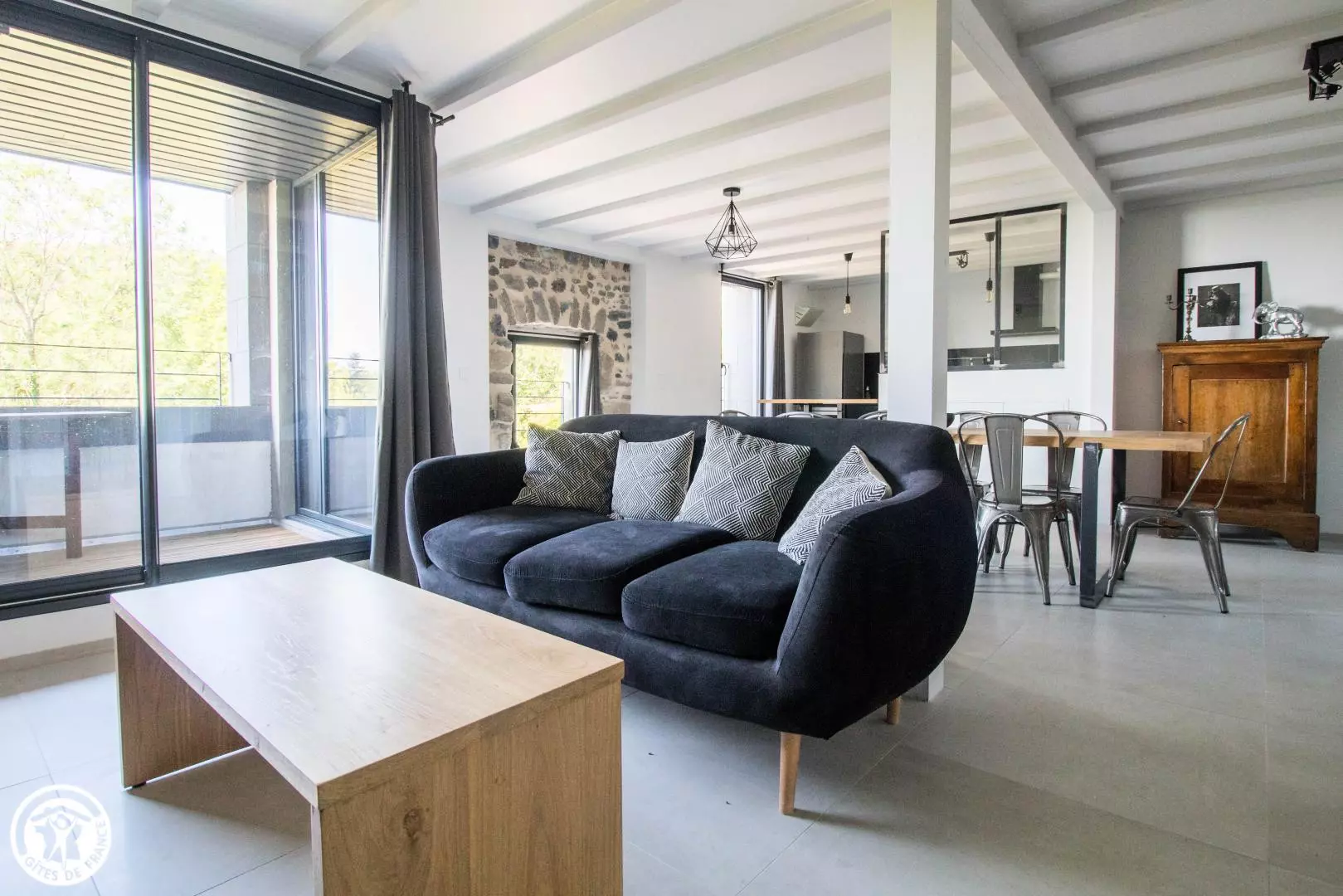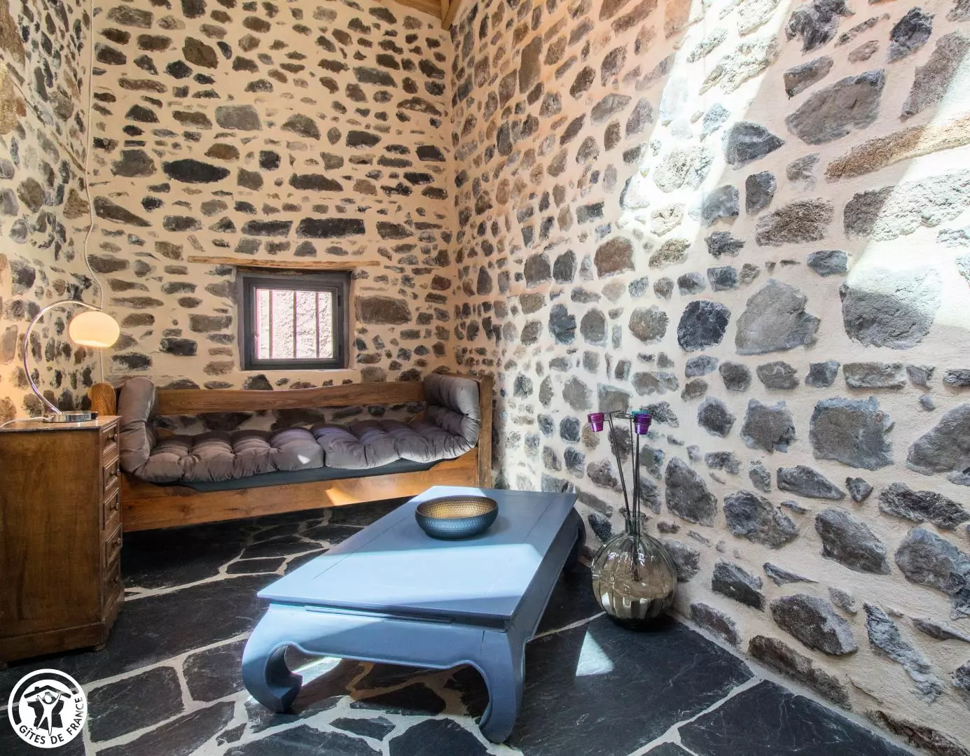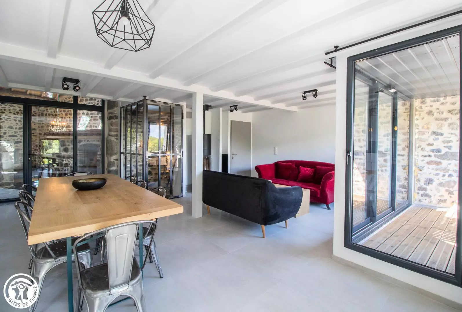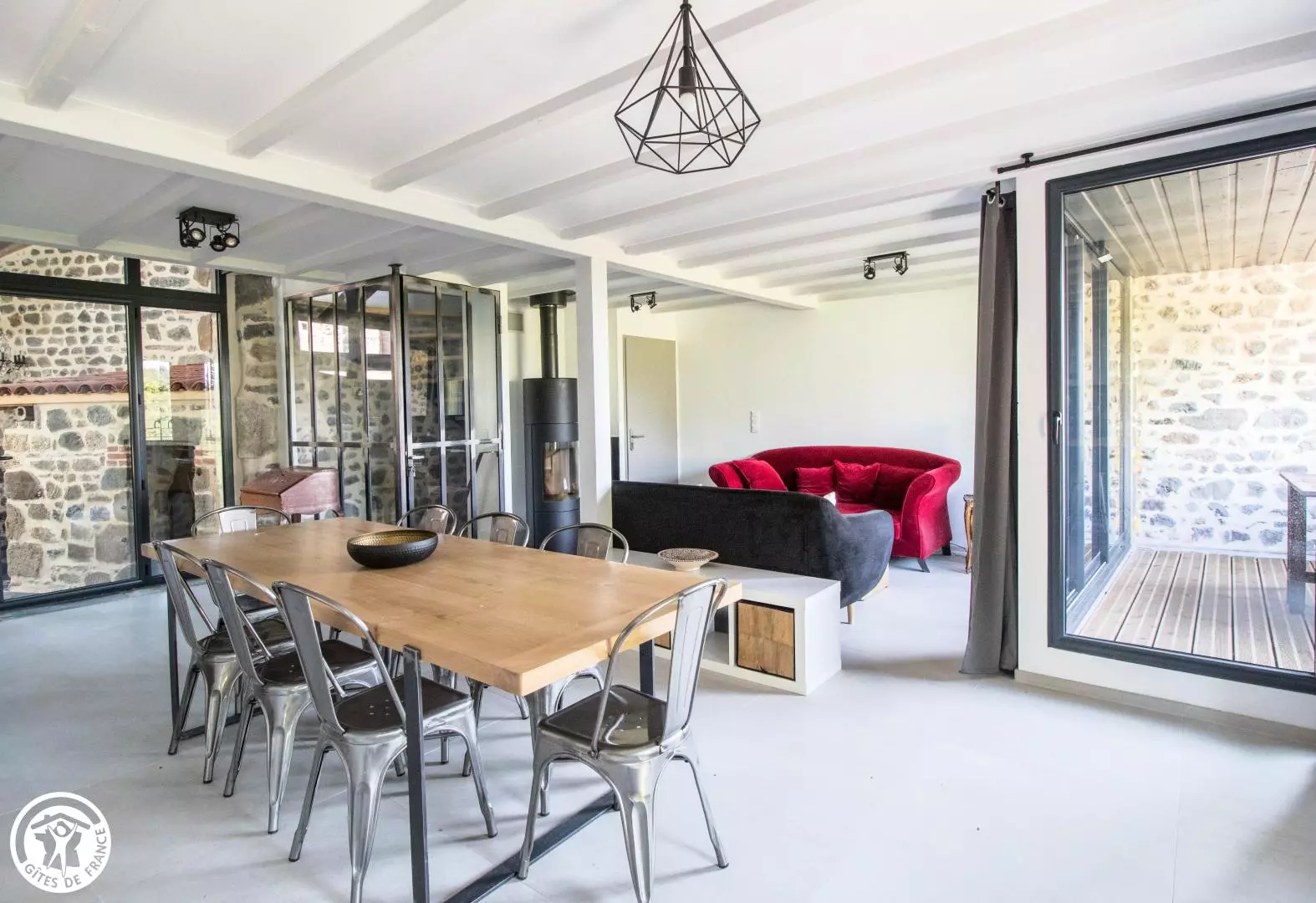 Profitez de ce superbe gîte, du sauna, des terrasses et du grand jardin d'hiver ! Séjournez en tribu au cœur du Parc Naturel Régional des Volcans d'Auvergne. Maison de bourg en pierre située dans le charmant village d'Olloix. Elle se compose au rez-de-chaussée :