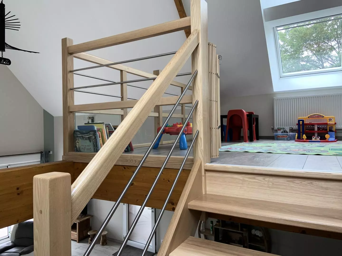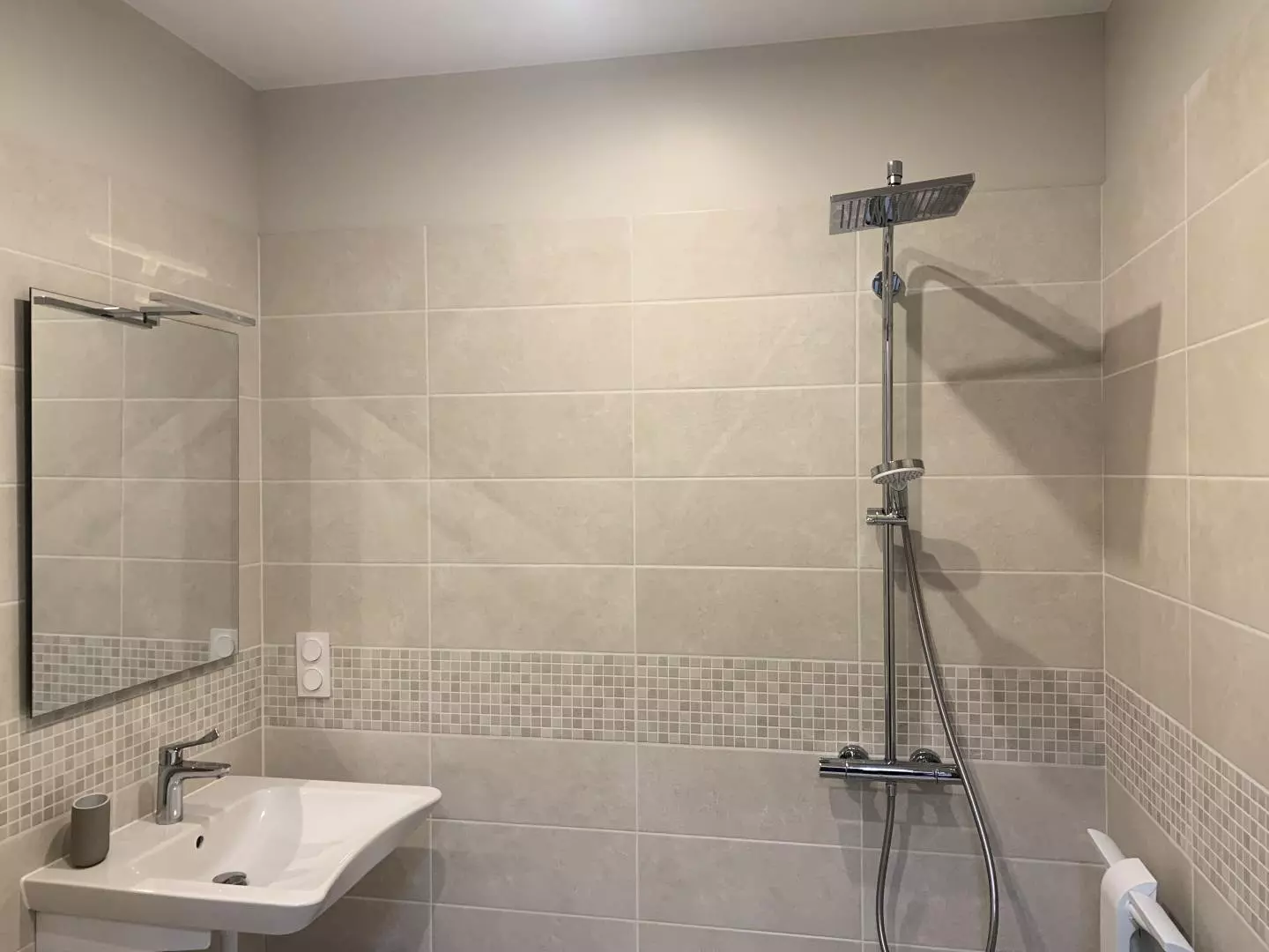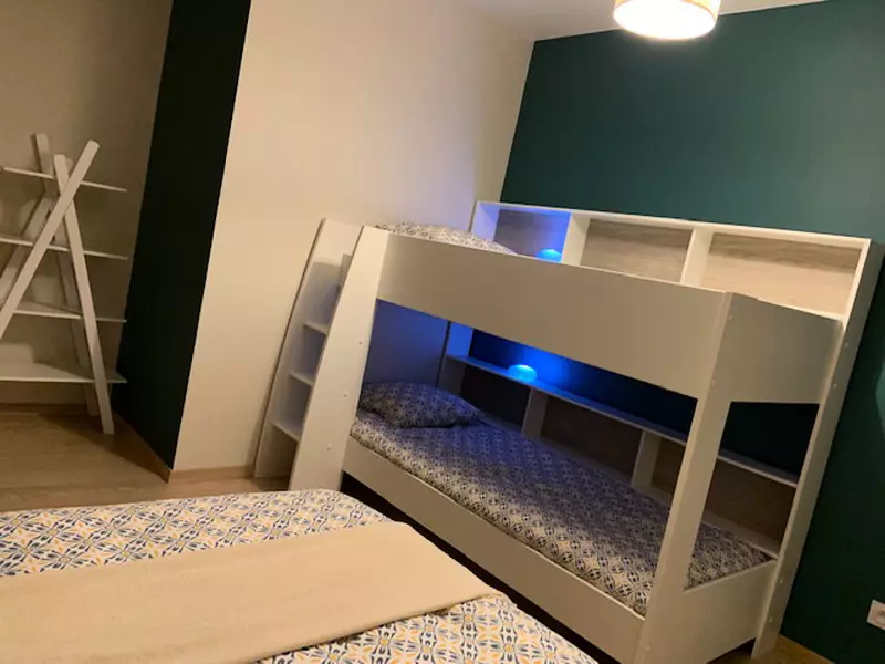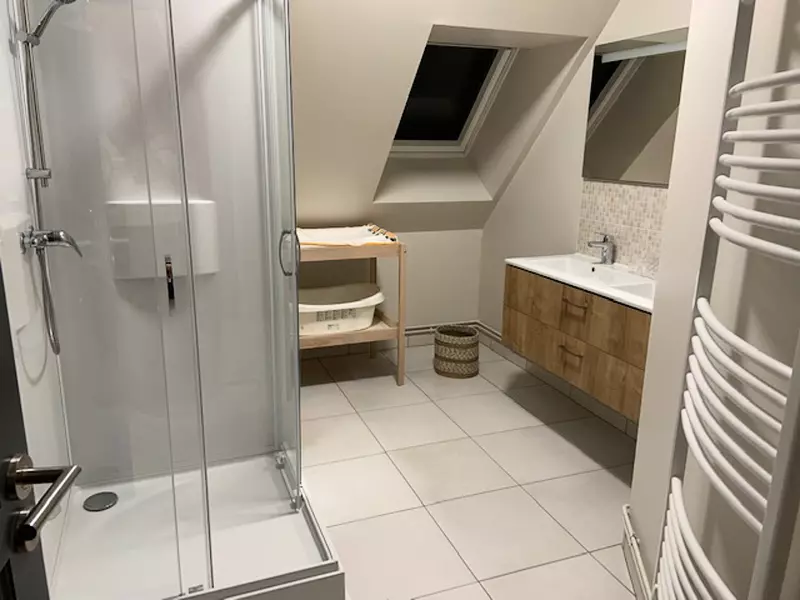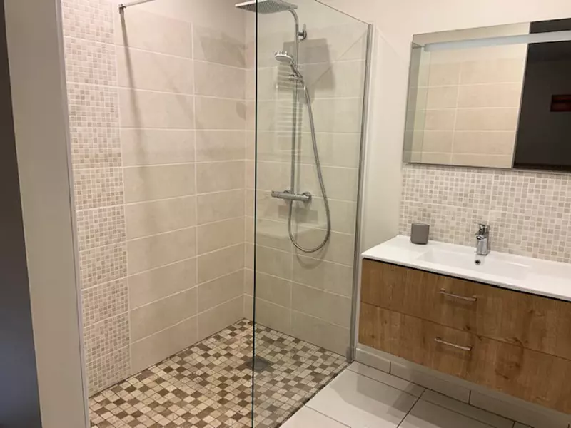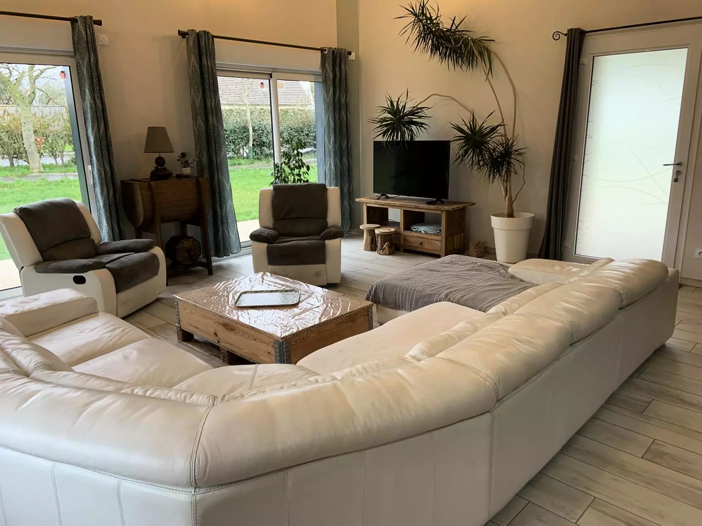 Rez-de-chaussée : - salle à manger/salon lumineux avec grandes baies vitrées, TV, enceinte bluetooth,