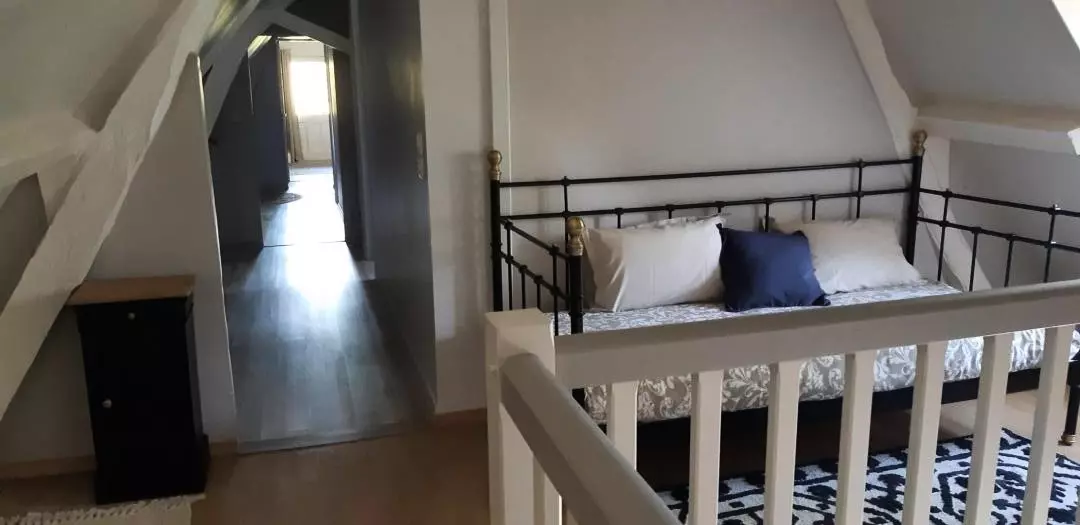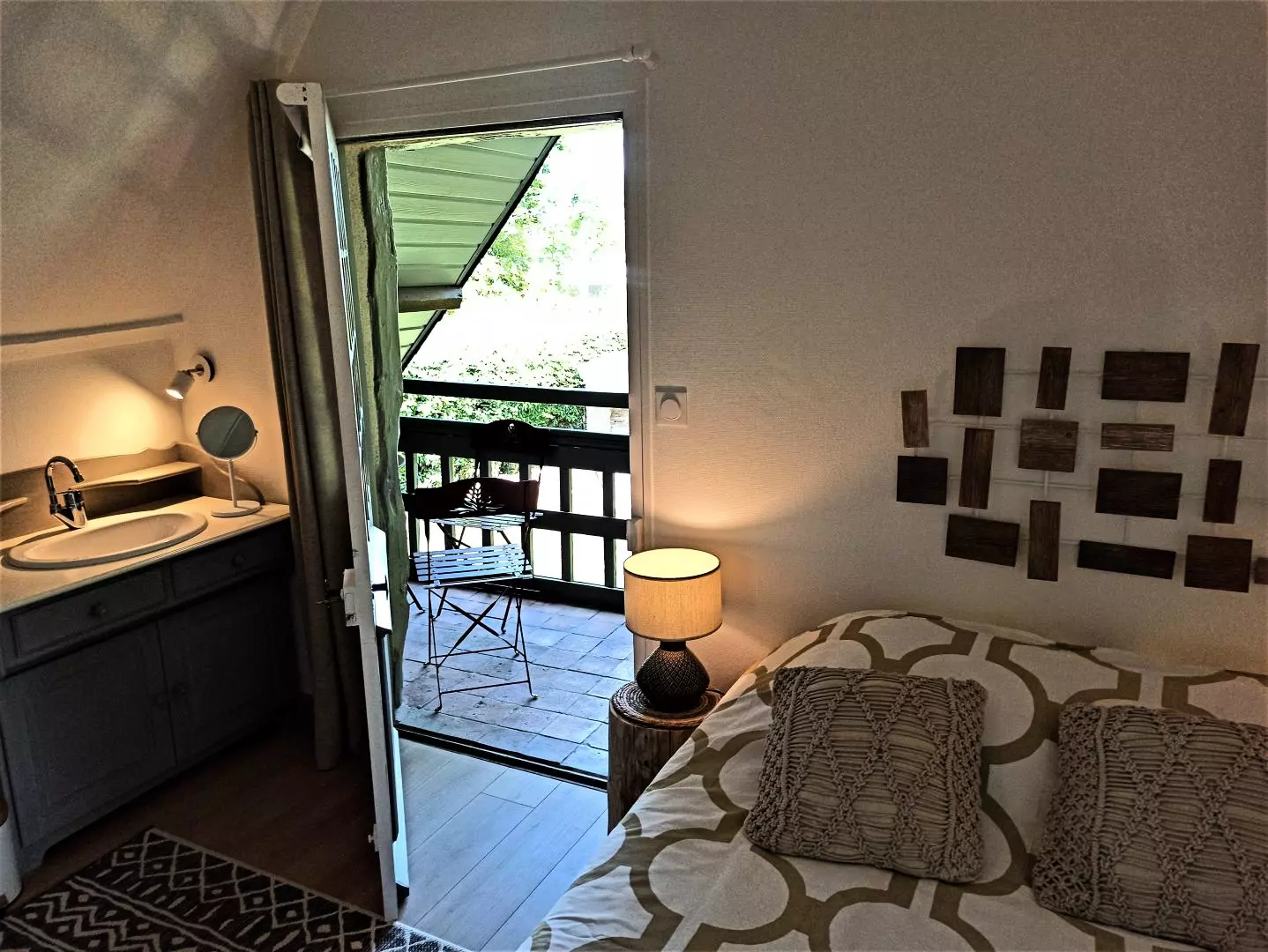 • Chambre 3 personnes : 1 lit 140x190cm et lit 90cmx190cm, petit balcon avec table et accès indépendant escalier