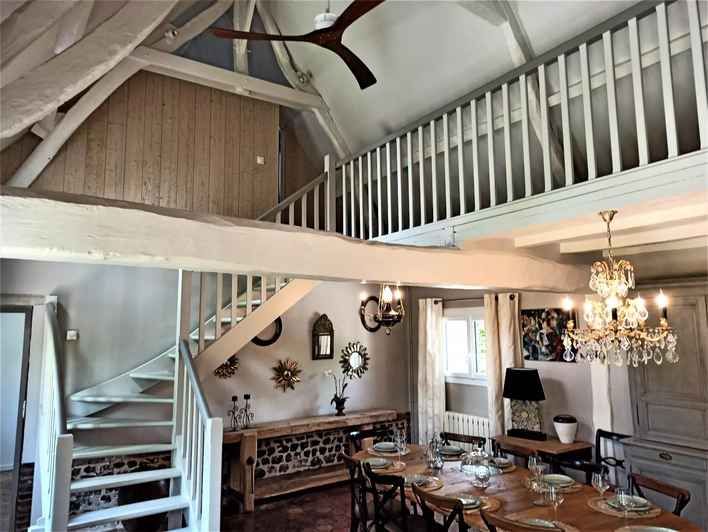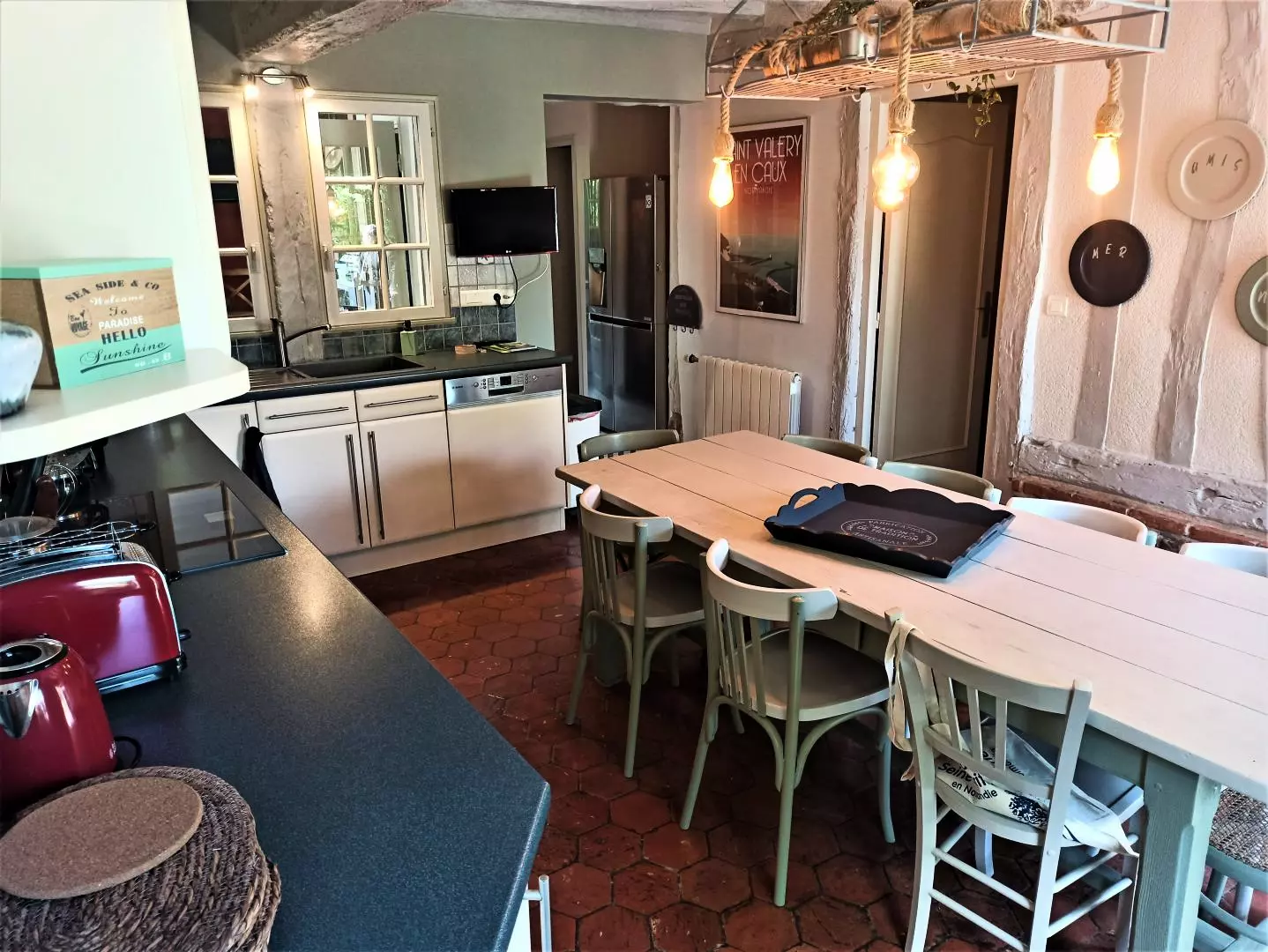 • WC. Terrasse avec 2 planchas à gaz. Pergola avec grande table extérieure. Salon de jardin avec bancs et fauteuils. chaises longues à disposition. Mare non protégée sur place. Terrain de pétanque. Parking sécurisé. Boîte à clés à disposition en cas d'arrivée tardive. Dans le village de Vibeuf, à 3 km de tous commerces (Yerville), vaste longère entièrement rénovée avec brio par les propriétaires qui ont réussi à conserver son cachet en alliant confort et modernité. Vous apprécierez la hauteur sous plafond de la lumineuse pièce de vie, l'imposante cheminée ainsi que la salle de jeux avec billard, bar et foot sur table. Le jardin arboré fera le plaisir des amoureux de la nature et vous pourrez profiter des deux planchas à gaz, de la pergola, de la terrasse et du terrain de pétanque aménagé. Le littoral est facilement accessible à 25 minutes en voiture tout comme Dieppe et Rouen à environ 35 minutes. Rez-de-chaussée :