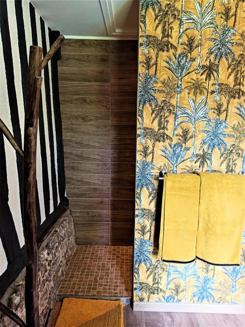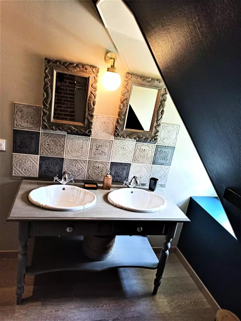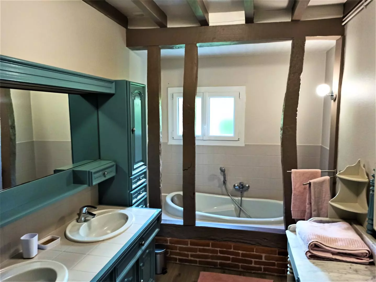 • Chambre 2 personnes : 1 lit 140x190cm avec salle d'eau (douche italienne) et WC privatifs (ouverts sur chambre), - Salle de bain avec baignoire et lavabo double vasque,