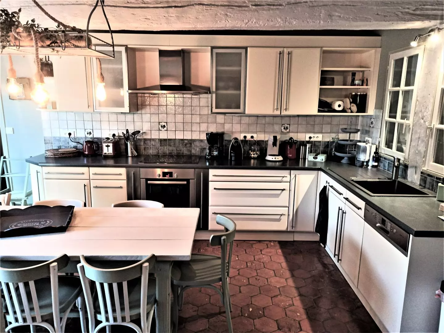 • Cuisine entièrement équipée : plaques induction, frigo américain avec machine à glaçons, cafetières Expresso, Senseo et à filtre, lave-vaisselle, four encastré...