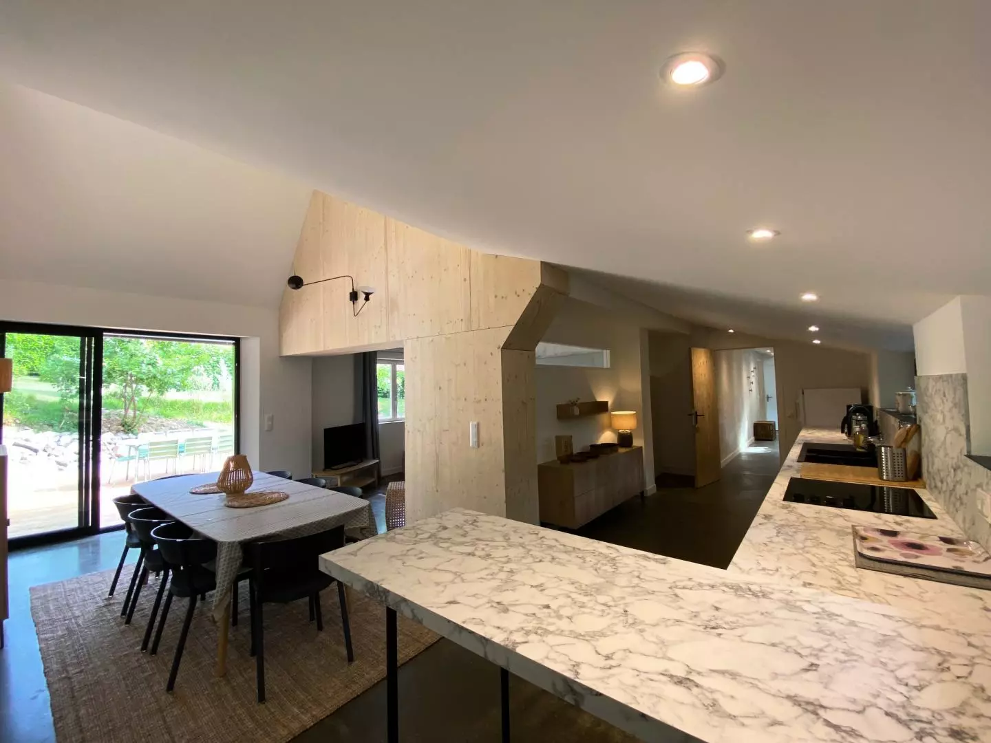 Les grands espaces qu'offrent la maison, sa décoration soignée et chaleureuse vous ferons vous sentir "comme à la maison". Vous profiterez d'un jardin "terrasse" clos par de la ganivelle, d'une terrasse en bois avec salon de jardin et barbecue, parking privé (3 voitures).