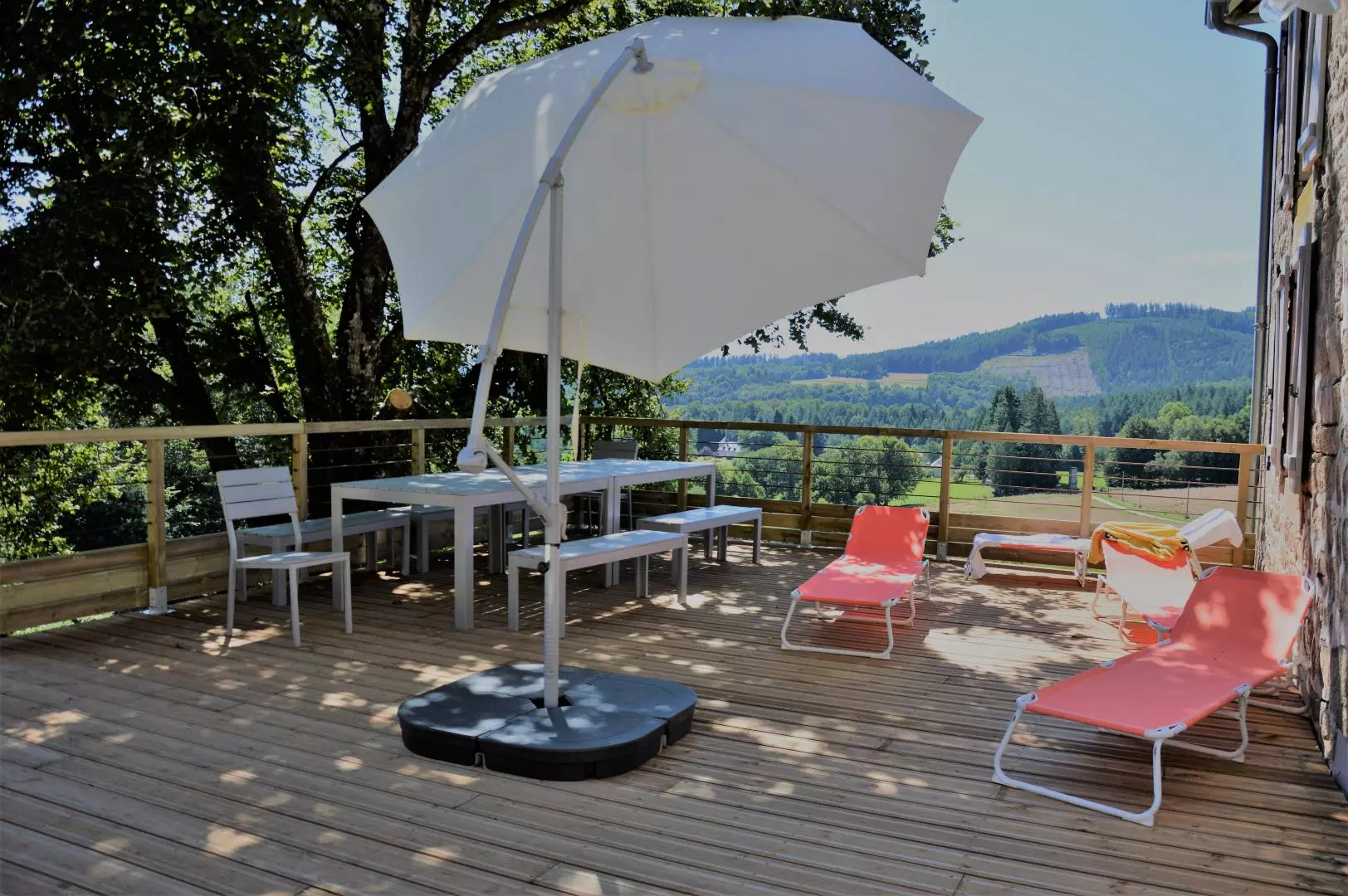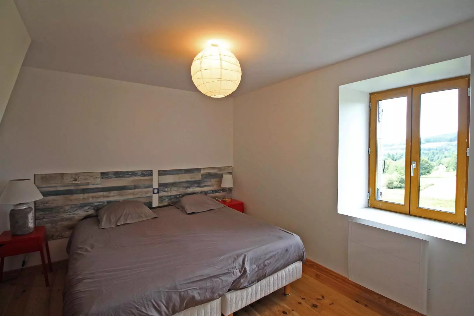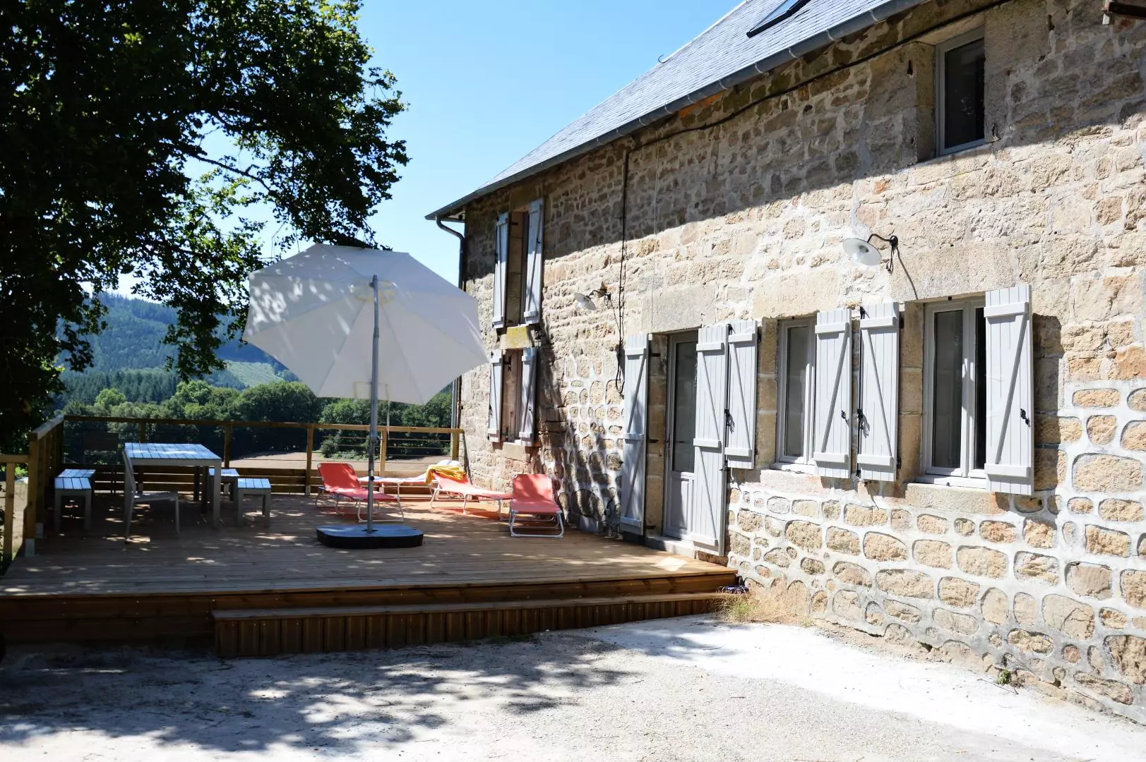 Au pays de la nature sauvage, entre le lac de Vassivière et Nedde, la maison isolée à flanc de colline, dispose d'une vue dégagée sur la campagne. Il n'est pas rare d'apercevoir un lièvre ou une biche se balader dans le jardin. Sa terrasse en bois, suspendue au dessus de la prairie, invite à la sérénité ou aux joyeuses tablées.