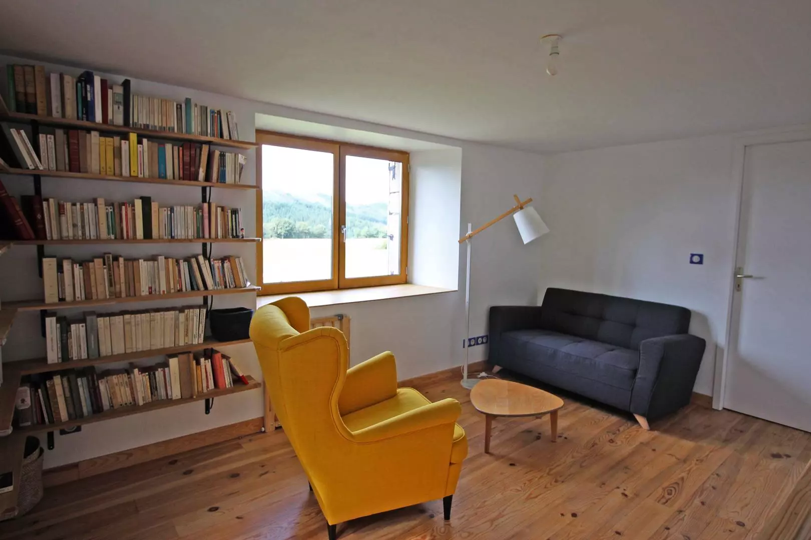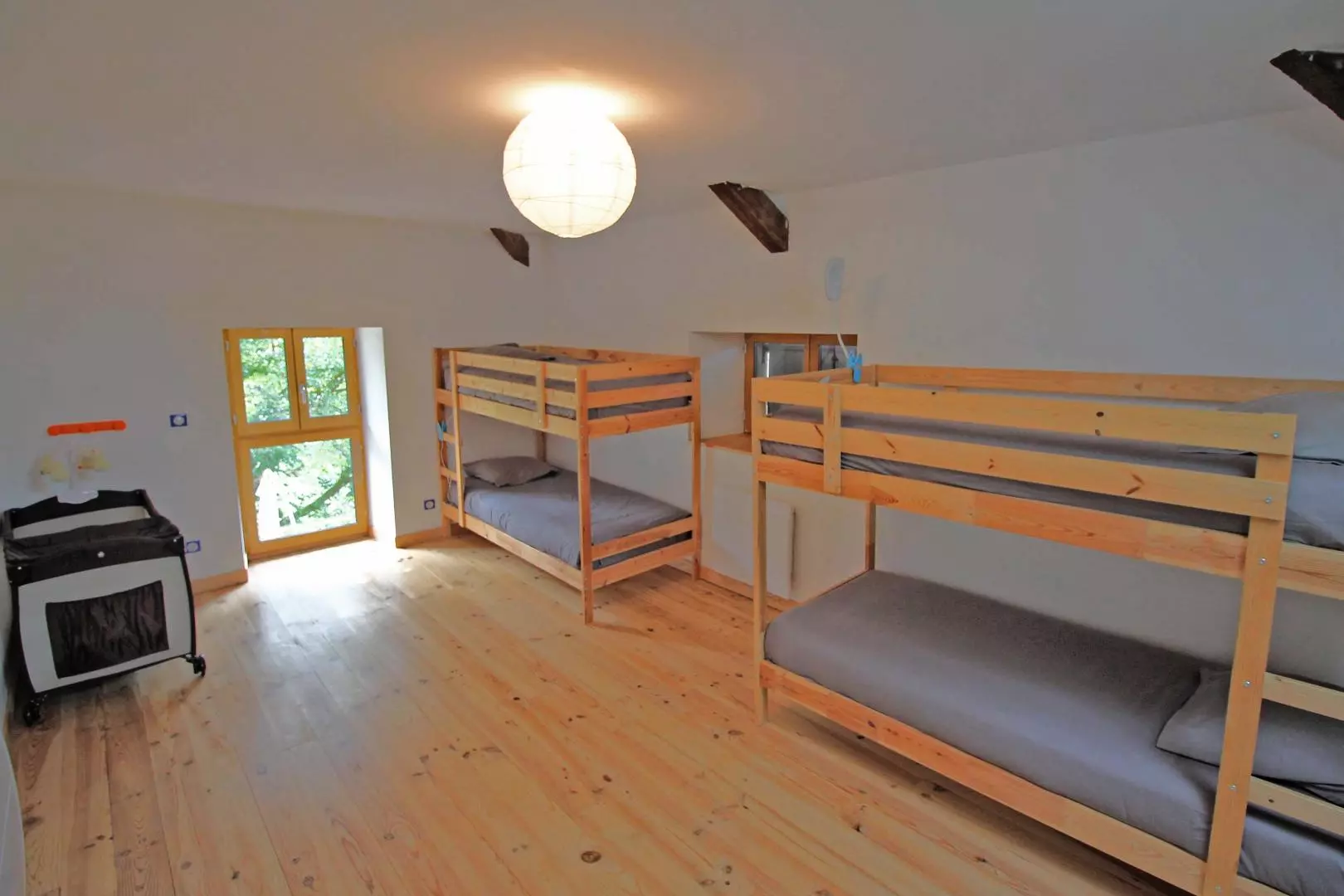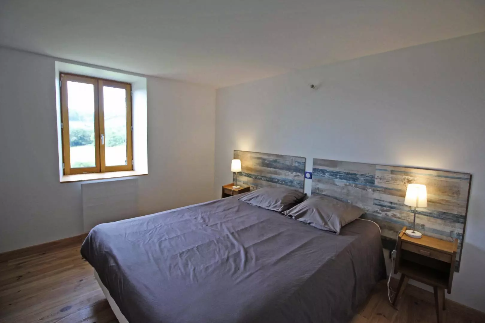 En rez-de-chaussée, accès direct à une vaste pièce à vivre qui dispose d'un espace salon avec poêle à bois, un espace cuisine et repas, une buanderie (lave-linge, sèche-linge, congélateur). Un autre petit salon cosy avec bibliothèque donne accès à un wc et une chambre (1 lit 2 pers. 160 cm). En rez-de-chaussée moins 1, une chambre (2 lits 90 jumelables) et une salle de bains. Au 1er étage une grande chambre traversante (2 X 2 lits superposés en 90, 1 lit bébé), 1 chambre (2 lits 90 jumelables) éclairée par un velux, 1 chambre (2 lits 90 jumelables), 2 petites salles d'eau dont 1 avec wc., 1 WC séparé. Chauffage électrique. Barbecue, chaises longues et meubles de jardin, tennis de table, terrain de pétanque, trampoline (4m de diamètre) d'avril à octobre. Au pays de la nature sauvage, entre le lac de Vassivière et Nedde, la maison isolée à flanc de colline, dispose d'une vue dégagée sur la campagne. Il n'est pas rare d'apercevoir un lièvre ou une biche se balader dans le jardin. Sa terrasse en bois, suspendue au dessus de la prairie, invite à la sérénité ou aux joyeuses tablées.