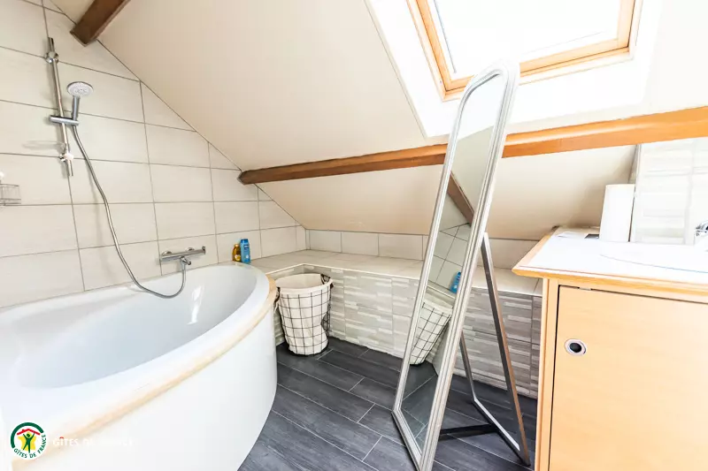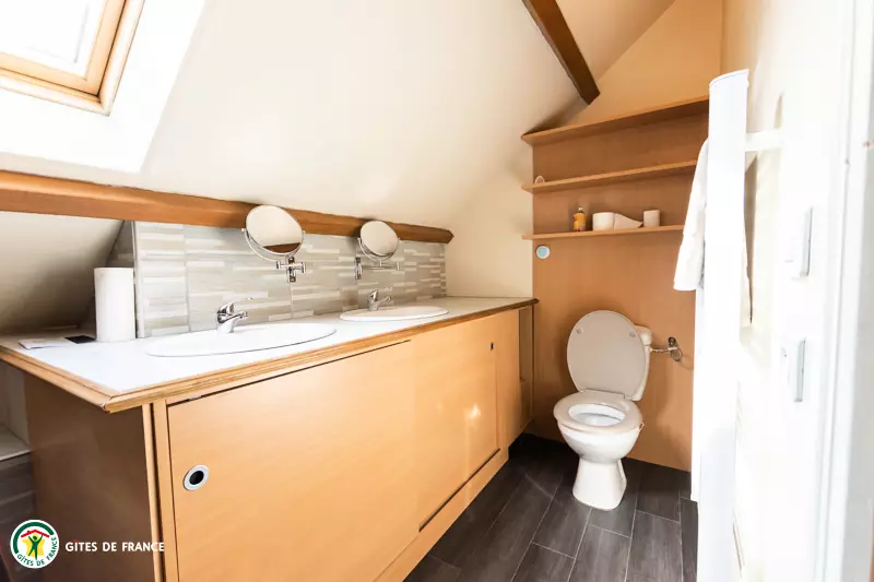 Au 1er étage, vous découvrirez 3 belles chambres avec chacunes un lit double en 160 et une salle de bain (avec baignoire, double vasque et WC).