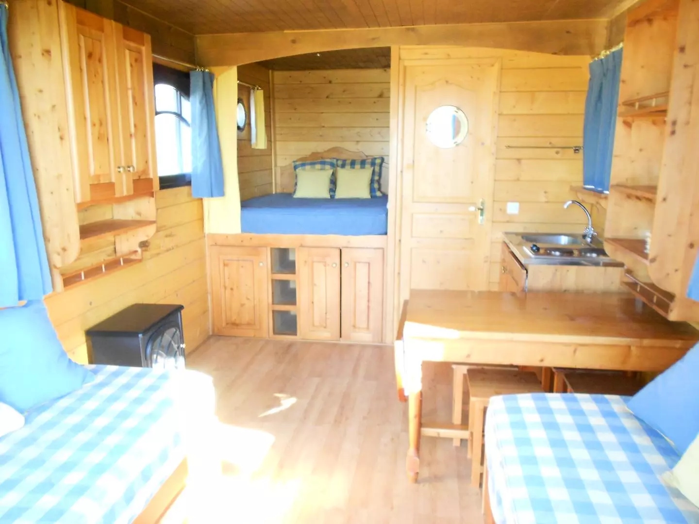 Située à proximité d'une exploitation agricole, cette roulotte offre un cadre idyllique entouré de chevaux et de paysages naturels. Les chevaux seront à proximité immédiate de votre roulotte dans un terrain clôturé, vous pourrez ainsi profiter de vos repas à l'extérieur en immersion avec la nature.