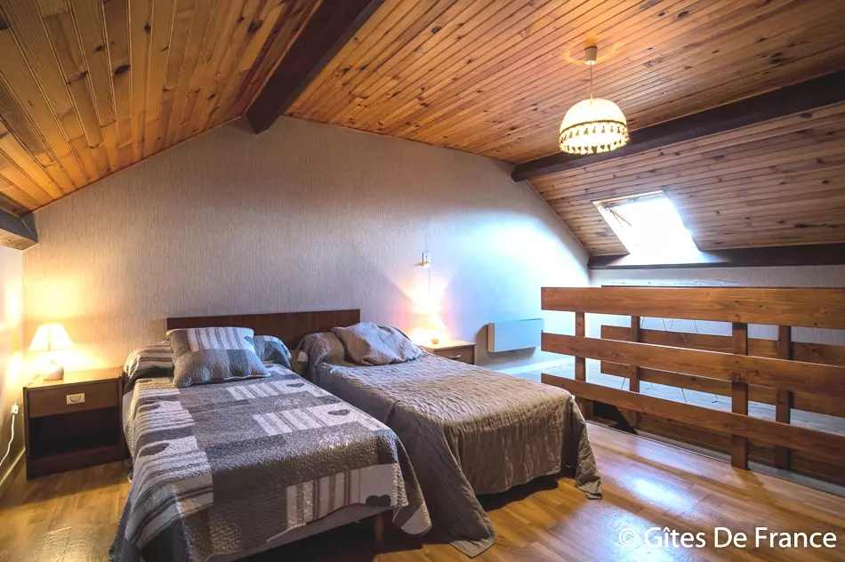 Vous pourrez profiter d'une cour fermée de 30m² avec un ensemble de deux tables avec bancs et parasols pour les beaux jours. Ce gîte se compose au premier étage :
