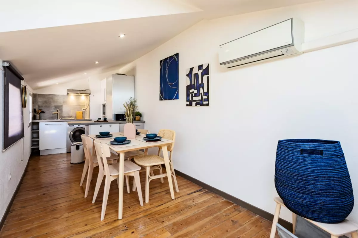 Cet appartement climatisé et lumineux se trouve au 3ᵉ étage d'un immeuble sans ascenseur et inclut :