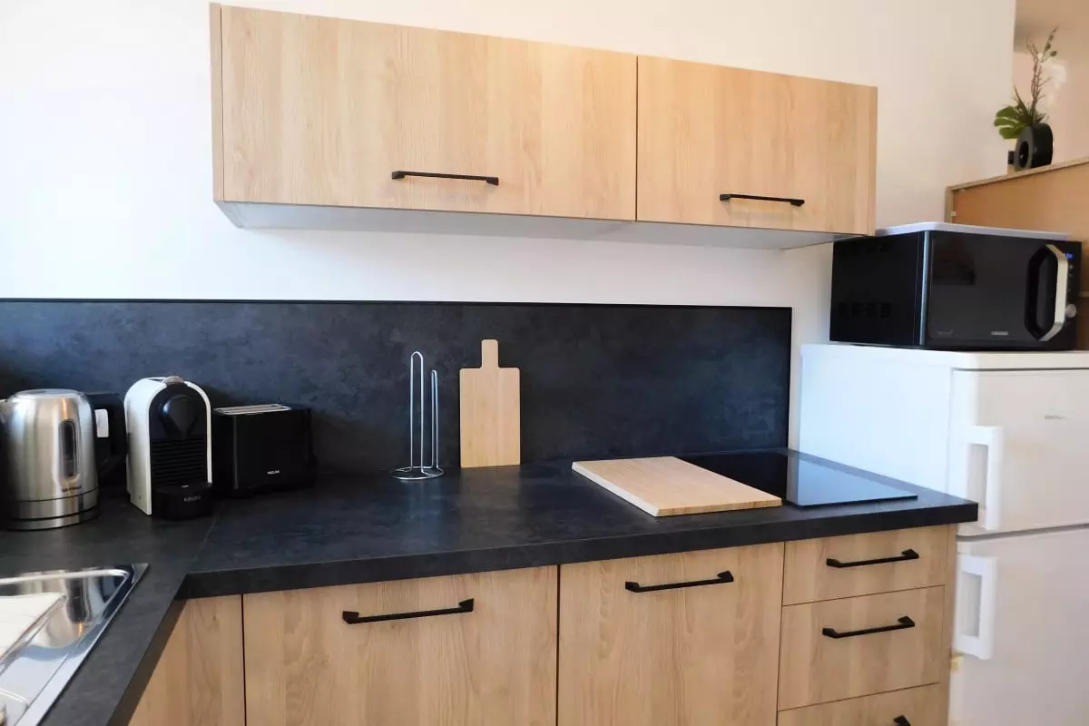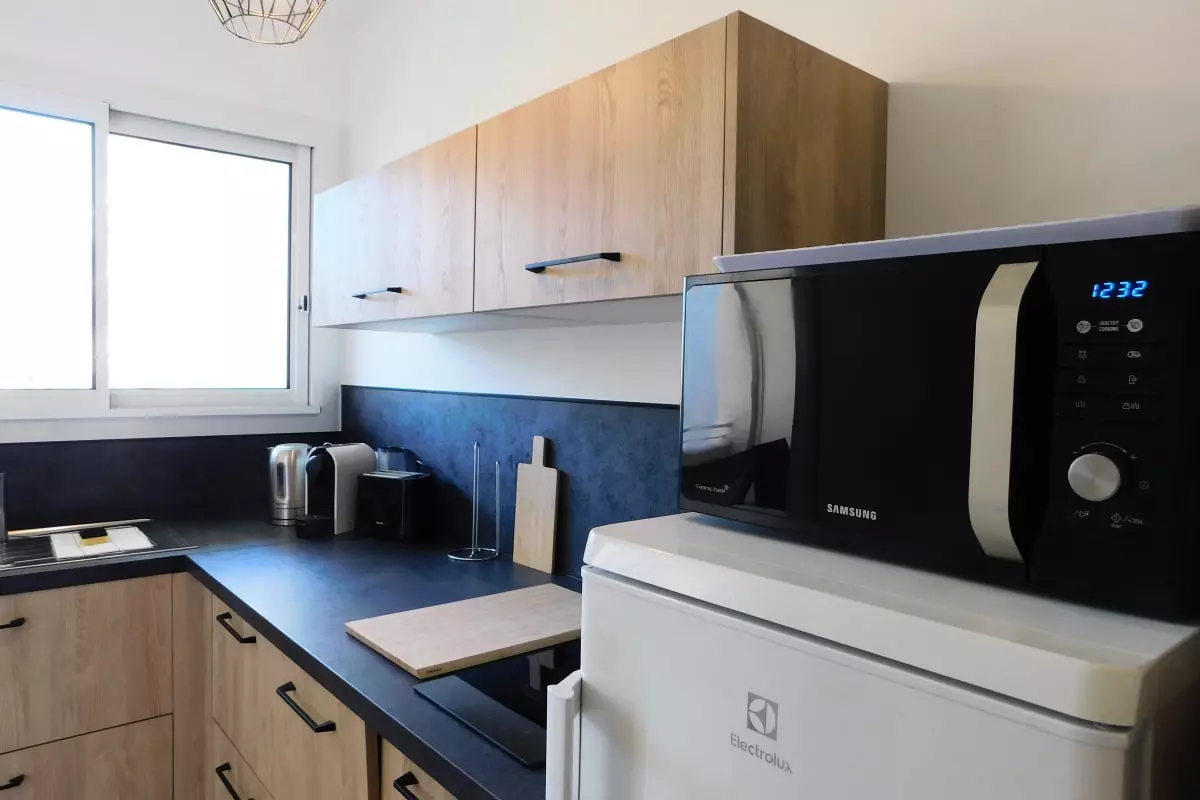 Vous disposerez d'une plaque de cuisson, d'un four micro-ondes, d'un lave vaisselle, d'un réfrigérateur avec un compartiment congélateur, une bouilloire, une machine à café nespresso et un toaster.