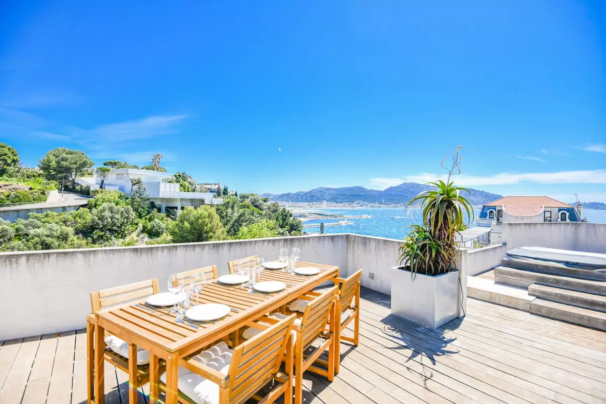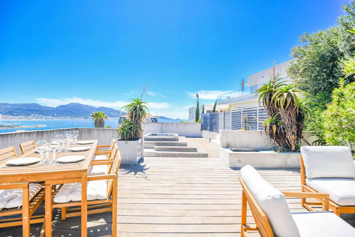 ArrayProfitez d'un séjour luxueux dans cette villa de 105 m², idéalement située dans le 7ème arrondissement de Marseille, à 200 m de la mer et à proximité des plages et de la Marina Olympique. La villa offre une piscine privée et un parking sécurisé. Entièrement équipée avec télévision grand écran, internet fibre, machine à laver, elle comprend deux chambres spacieuses avec salles de bain privatives et dressing. Profitez également d'une terrasse et d'un toit-terrasse de 100 m² avec vue mer. Un garage est inclus.