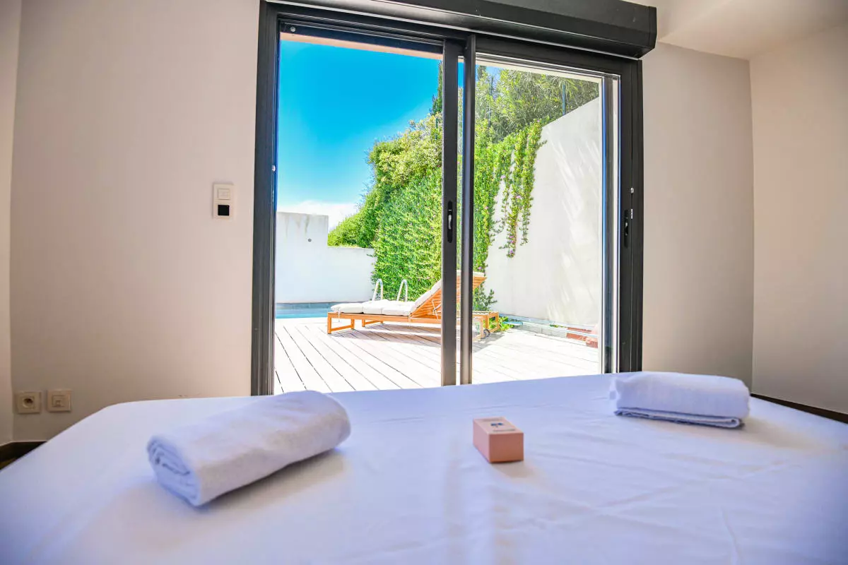 OPTION bains à remous : Le bains à remous n'est pas inclus dans la location de la villa. Vous avez la possibilité de demander la mise en eau du bains à remous située sur le solarium de la villa pour toute la durée de votre séjour. Prix : 200 euros par jour et pour toute la durée de votre séjour. Merci de nous faire la demande au minimum 72h avant votre arrivée. Possible uniquement si la villa n'est pas louée avant votre arrivée.