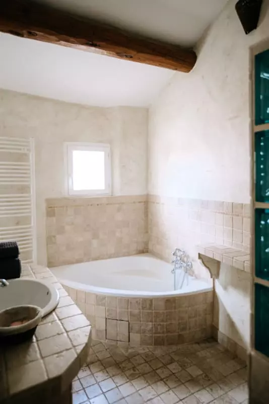 Une salle de bain moderne avec baignoire et douche à l'italienne ainsi qu'un deuxième WC séparé complètent cet étage, offrant tout le confort nécessaire pour votre séjour.
