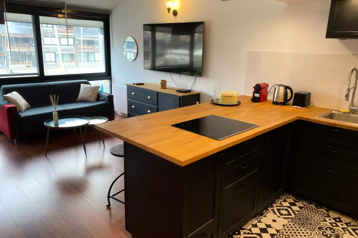 L'un des atouts de l'appartement est sa localisation, proche de la gare, du marché, de la plage, du centre-ville et de la ville voisine de Trouville. Il est situé dans une marina calme et apaisante, avec un gardien 24/24 pour plus de sécurité. L'appartement est bien équipé pour un séjour confortable et permet un accès facile aux principales attractions touristiques de Deauville.