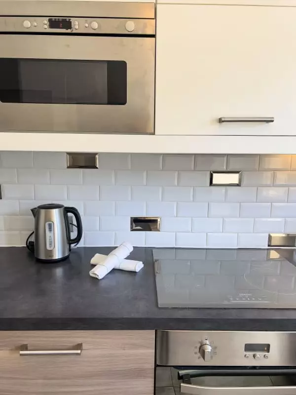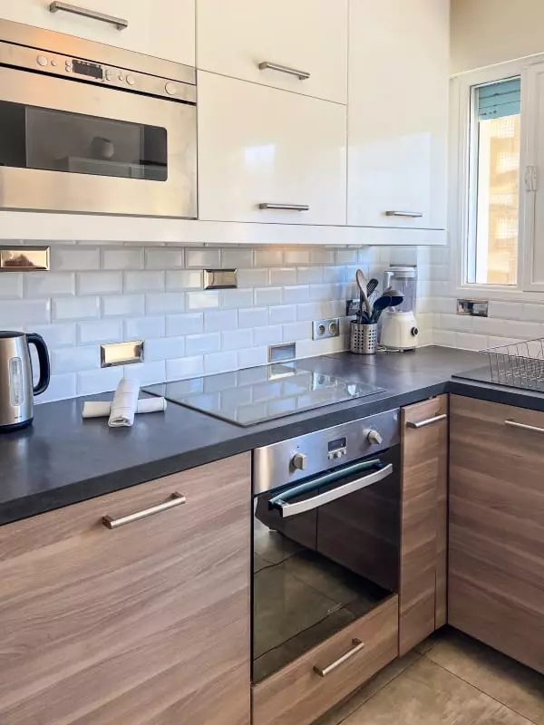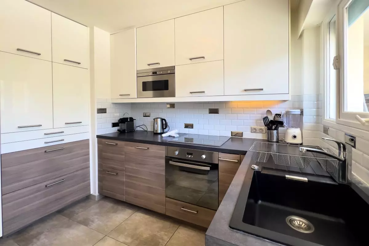 La cuisine entièrement équipée vous permettra de préparer de délicieux repas à déguster sur le balcon tout en admirant la vue sur la piscine.