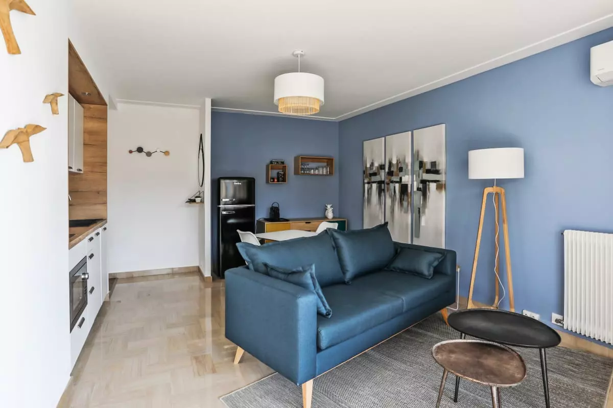 Promenez-vous au bord de la plage à quelques pas de l'appartement, vous pourrez alors profiter de l'air marin pour vous ressourcer ! Le centre-ville d'Antibes, avec ses commerces, ses restaurants et son port, est à seulement quelques minutes de marche. Vous trouverez le charmant village de Juan les Pins à 20 min de marche. Enfin vous atteindrez Cannes en 30 min de voiture et Nice en 45 min.