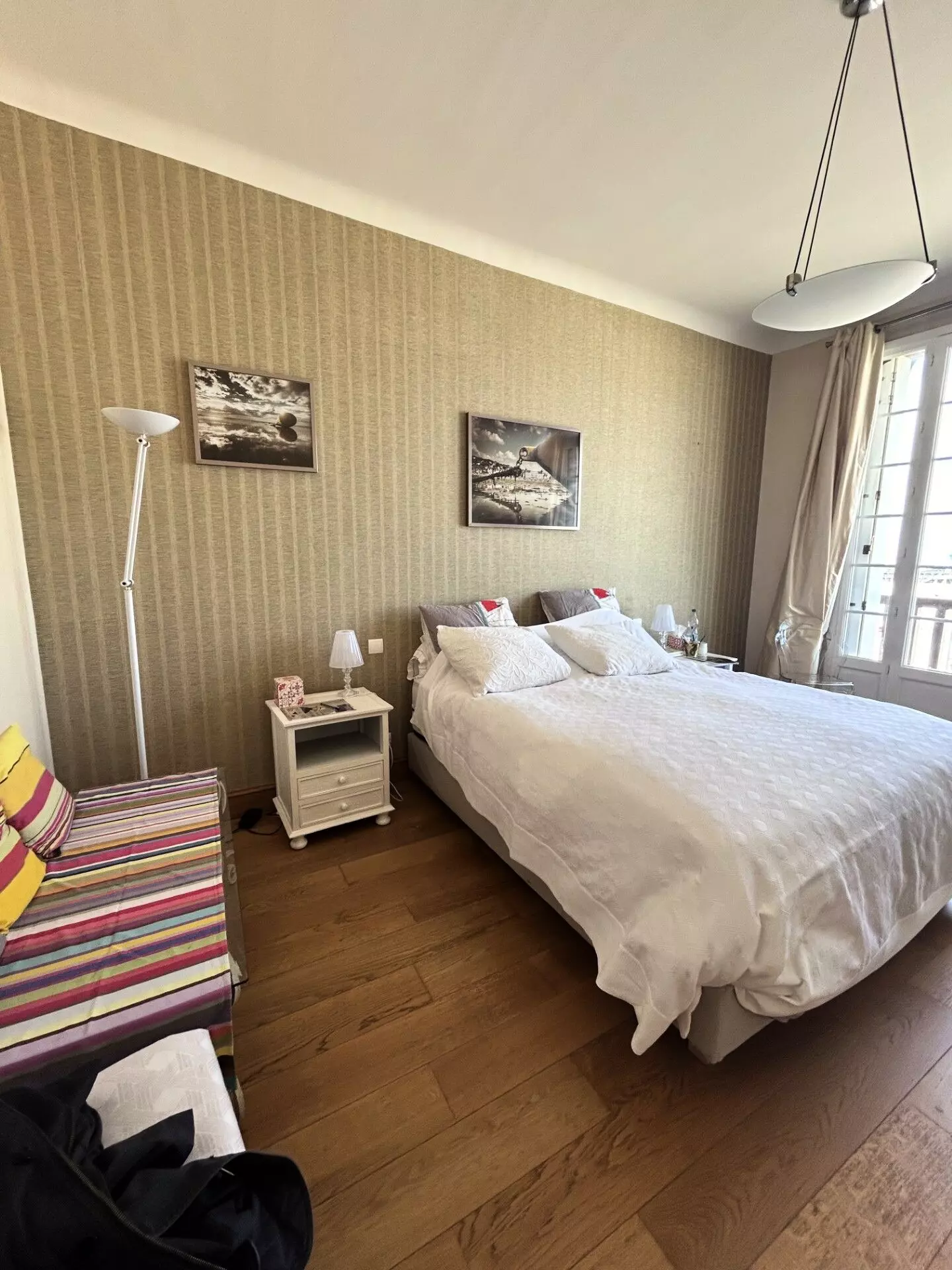 Ce bel appartement vue mer de 70 m² se situe au 2ème étage avec ascenseur et comprend : - un espace de vie avec un canapé convertible de 140x190 donnant sur un grand balcon vue imprenable sur la mer,une chambre avec un grand lit de 140x190 - une salle de douche avec Wc, - une cuisine bien équipée (machine à café, bouilloire, plaques de cuisson, frigo), - TV