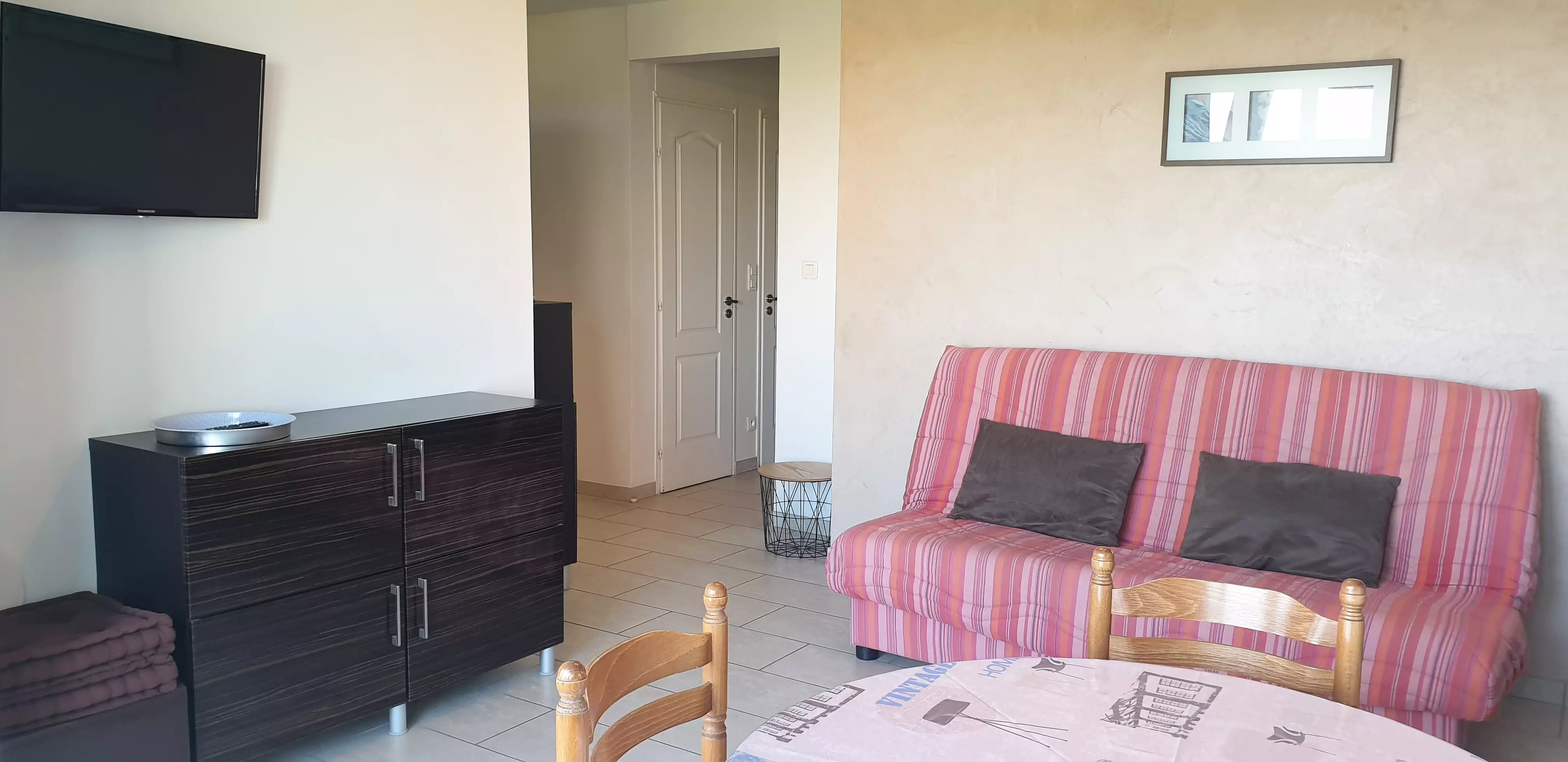 Votre location de vacances comporte : 1 séjour, 1 coin cabine, 1 cuisine, 1 salle de bain, 1 WC séparé, 1 loggia.