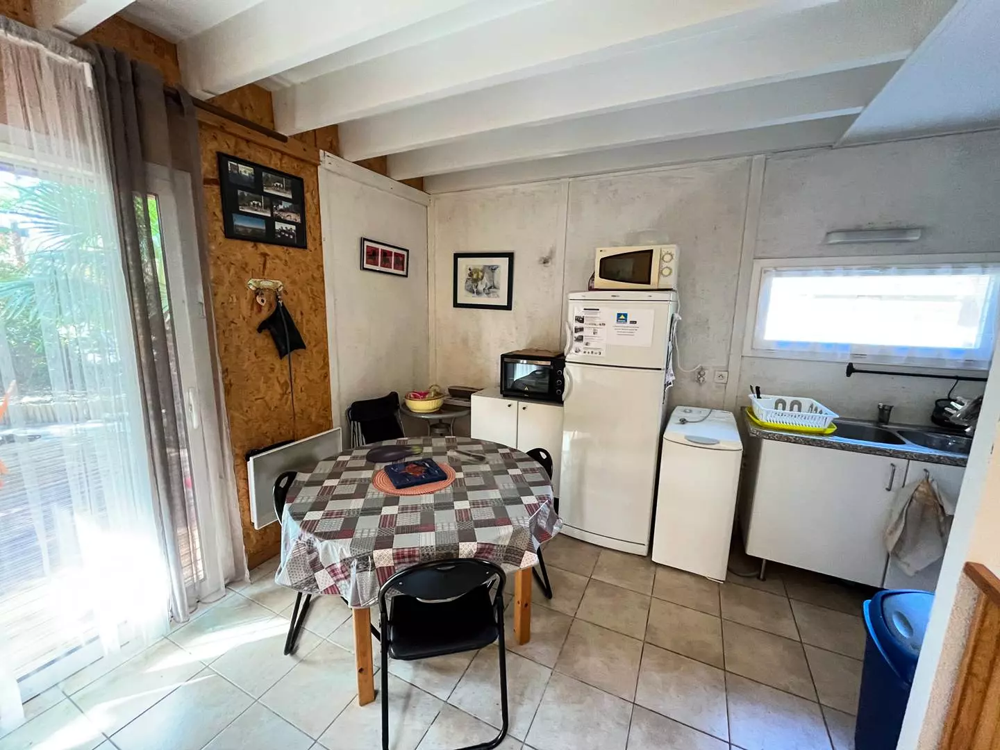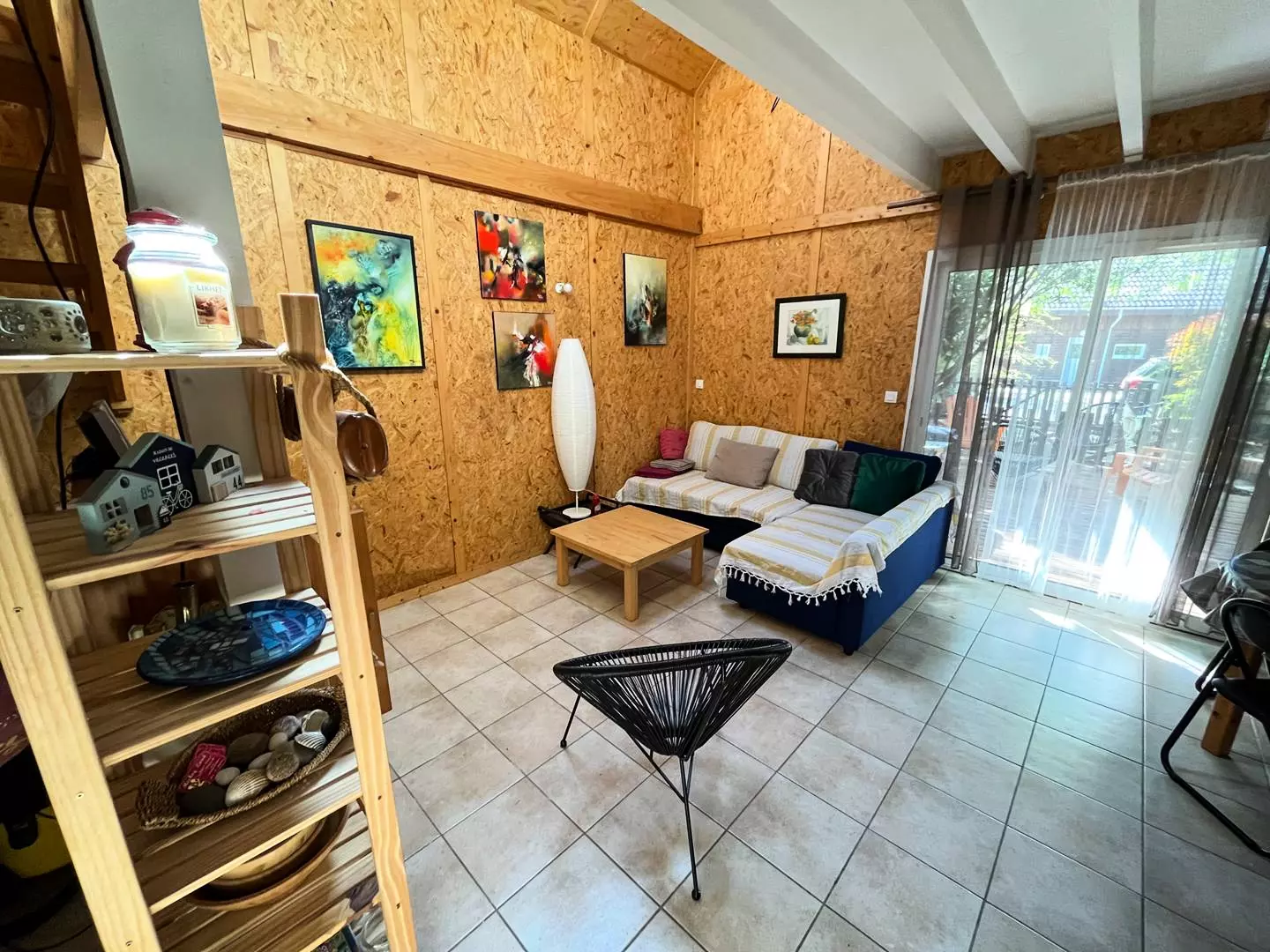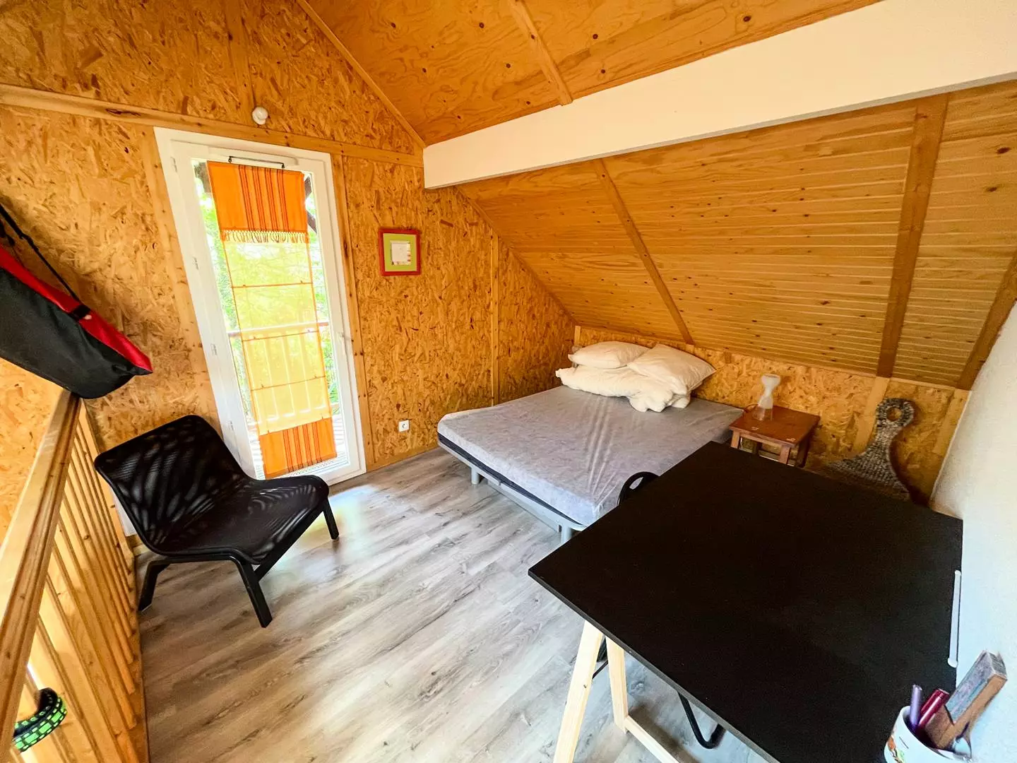 Maison pour 4 ou 5 personnes de 70m² comprenant au rez-de-chaussée, d'une cuisine ouverte sur le salon, d'une première chambre avec un lit de 140cm, d'une salle d'eau et d'un WC indépendant. A l'étage, vous trouverez une deuxième chambre avec deux lits simples (+un matelas d'appoint), une deuxième salle d'eau et un coin repos avec un futon de 140 cm attenant à un petit balcon. A l'extérieur, un jardin clos de 200 m² avec terrasse en bois comprenant un salon de jardin.