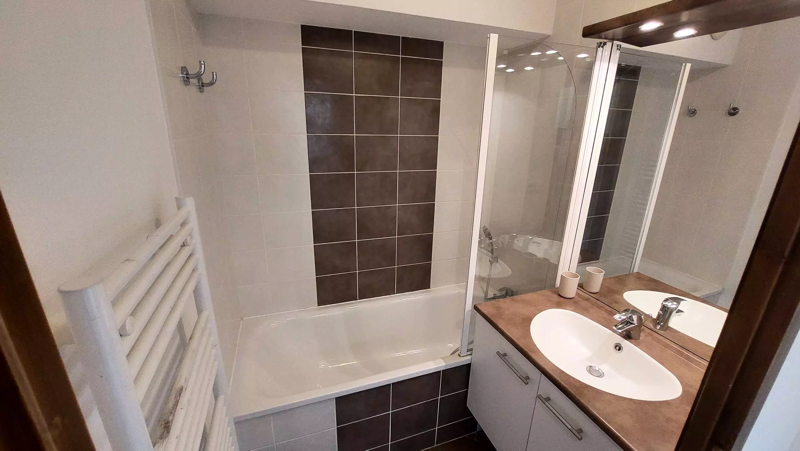 30 m² environ au 2ème étage avec vue Mont Blanc, un séjour avec un canapé-lit 2 personnes (rapido), une chambre 1 lit 2 personnes, une salle de bains. Votre appartement est équipé d'un coin cuisine avec plaques vitrocéramiques + micro-ondes/grill + lave-vaisselle, d'un balcon sud, TV. Vous bénéficiez d'un parking couvert et avez accès en saison à la piscine couverte chauffée, la salle de fitness, à la buanderie, au billard et à la wifi. En dehors des saisons, résidence très calme et piscine fermée.