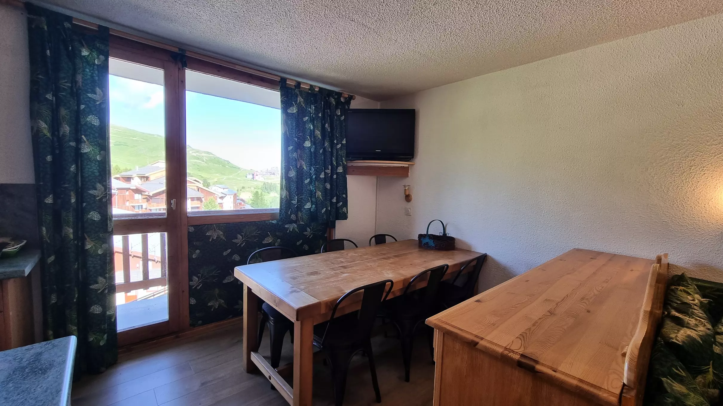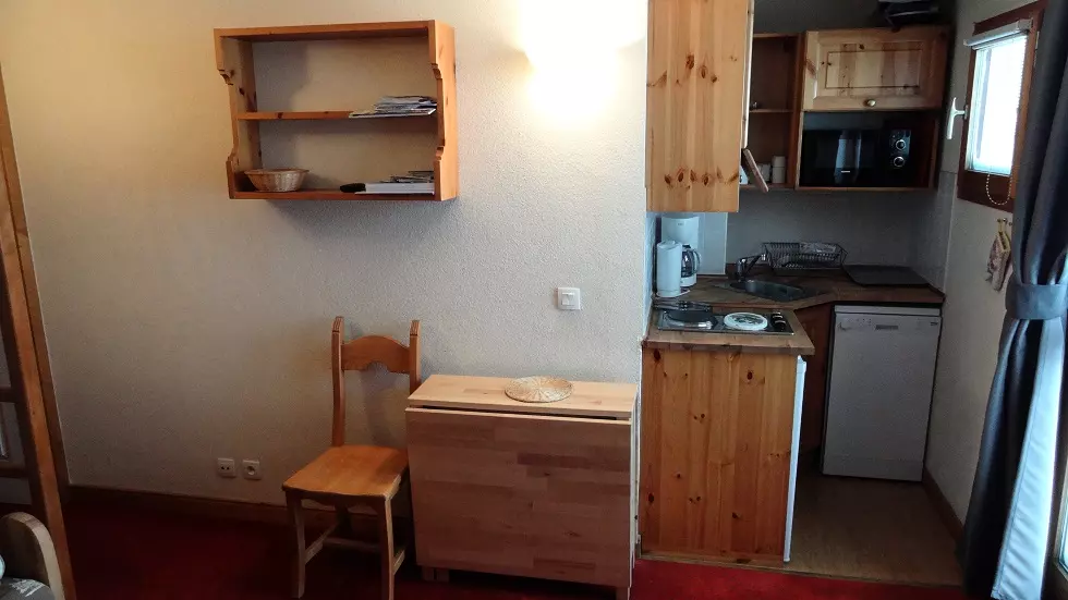 PLAGNE VILLAGES - Résidence Hameaux 1. Studio avec balcon exposé Ouest. La résidence se trouve en centre station, idéalement située à proximité immédiate des pistes, de l'ESF et des commerces.