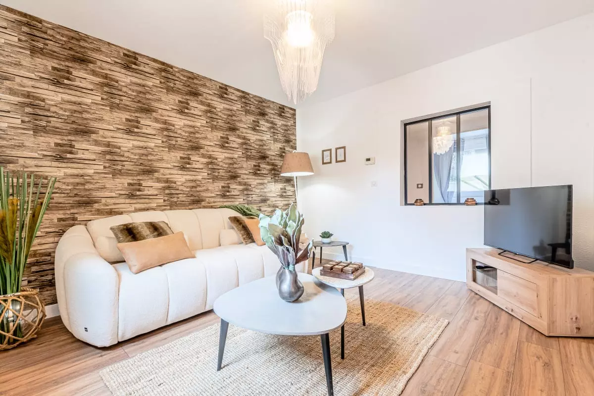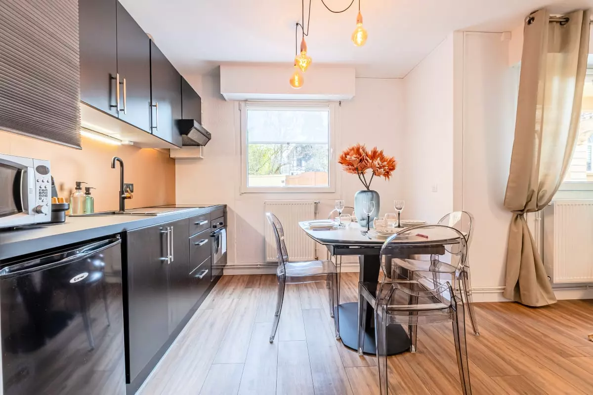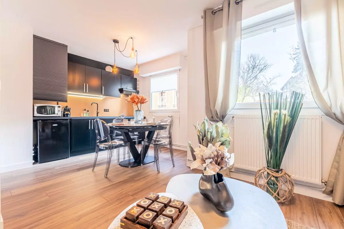 Vous bénéficierez d'une décoration chic, moderne et chaleureuse, avec des équipements vous garantissant un confort maximum ; ainsi que d'une cuisine toute équipée. Situé au rez-de-chaussée d'un immeuble, cet appartement sera idéal pour les familles, les couples, et les professionnels en recherche de confort et praticité.