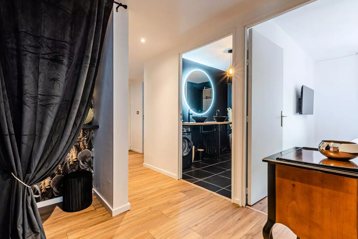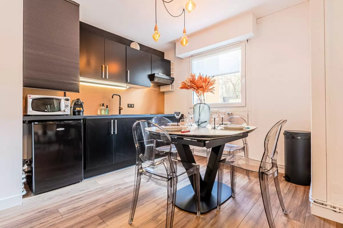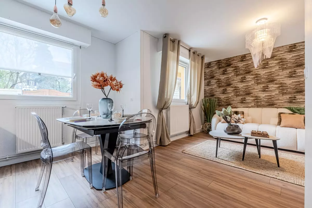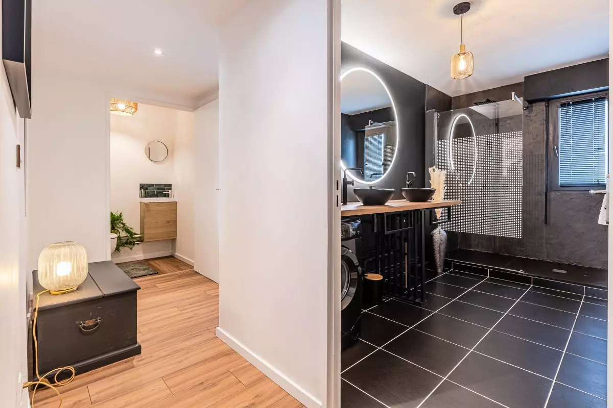 Vous bénéficierez d'une décoration chic, moderne et chaleureuse, avec des équipements vous garantissant un confort maximum ; ainsi que d'une cuisine toute équipée. Situé au rez-de-chaussée d'un immeuble, cet appartement sera idéal pour les familles, les couples, et les professionnels en recherche de confort et praticité.