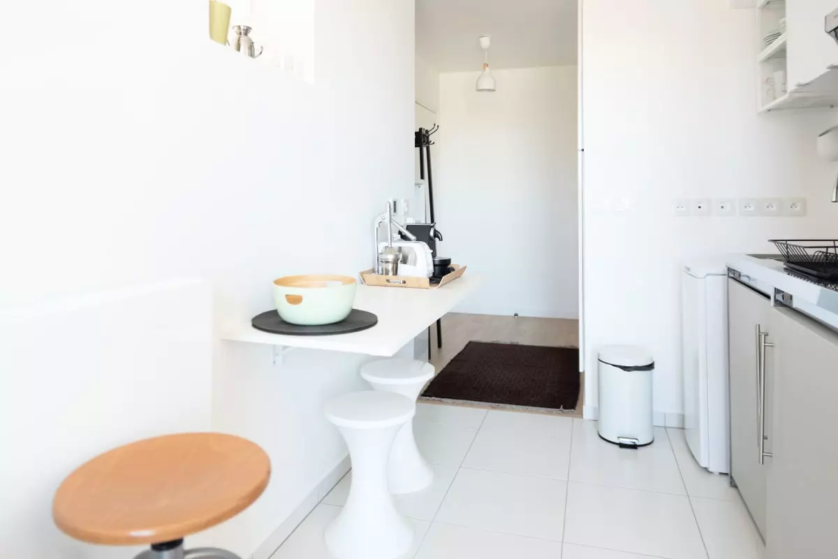 Ce charmant studio de 27 mètres carrés est situé dans un immeuble sécurisé et rénové, localisé au 9ᵉ étage avec ASCENSEUR et peut recevoir deux personnes.