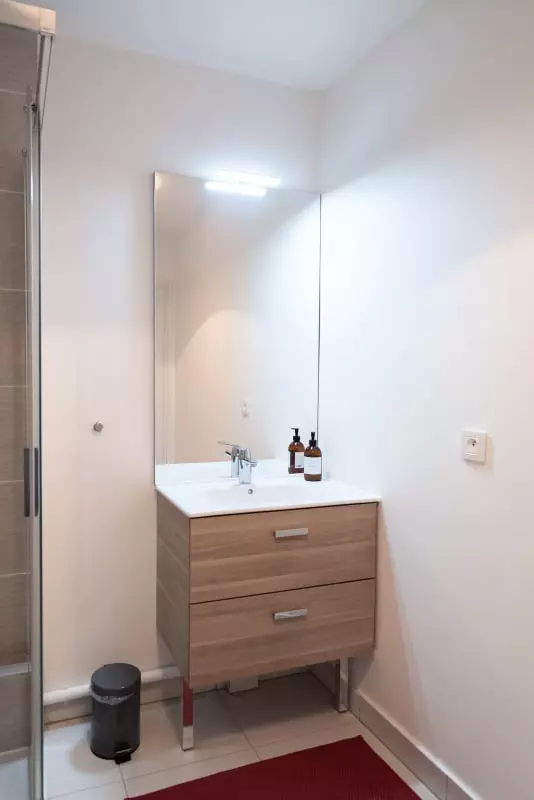 Il est composé d'un espace de couchage avec un canapé convertible, d'une salle de douche, d'un espace de travail et d'une cuisine bien équipée.